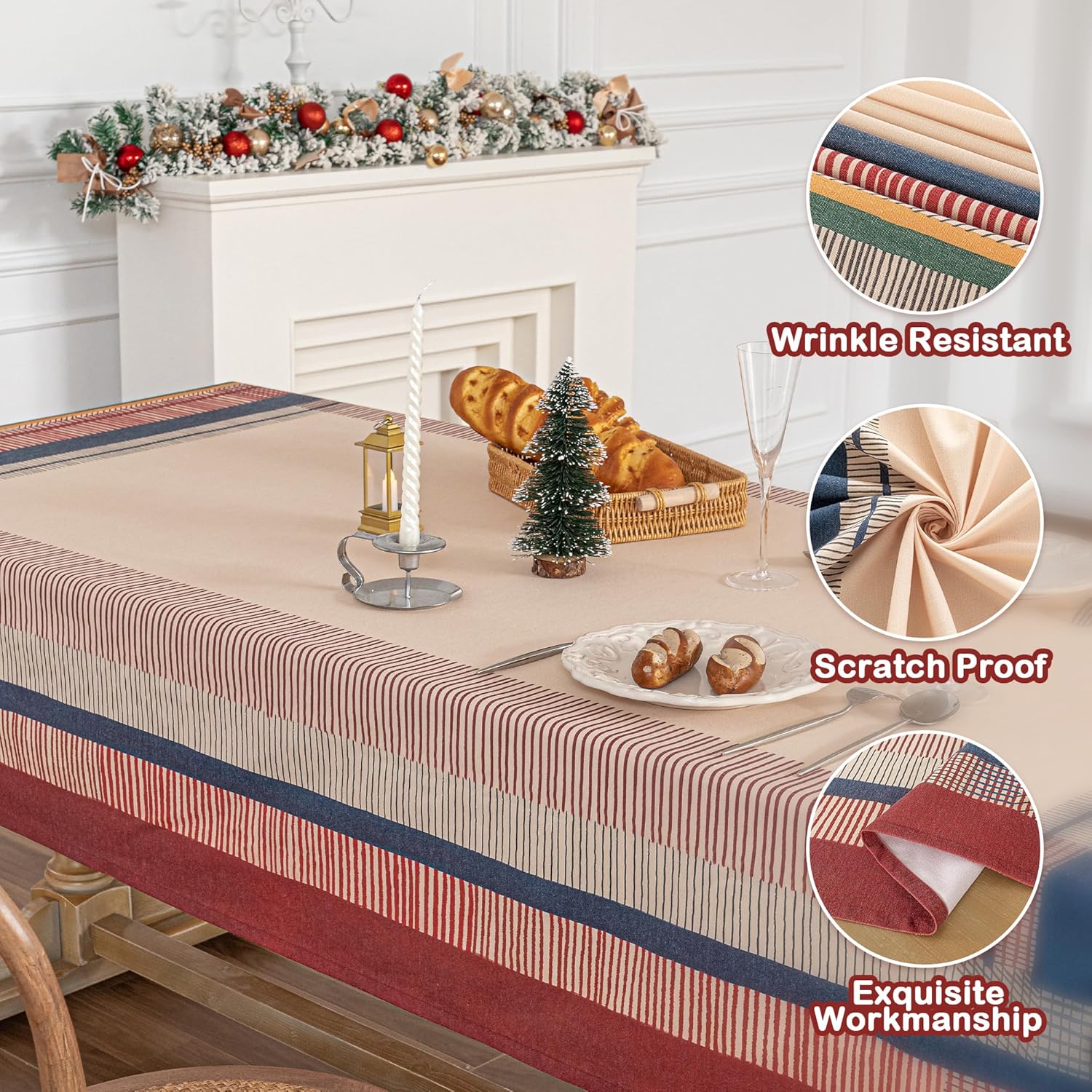 MYSKY HOME Cotton Table Cloth, Rustic Striped Fall Tablecloth, Farmhouse Table Cloth Waterproof Wrinkle Free Halloween Tablecloth Washable for Rectangle/Oblong, 55''x86'', Red