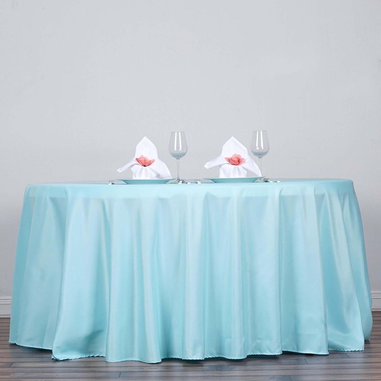 Efavormart Round Tablecloth, 120 Inch Stain & Wrinkle Resistant Washable Table Cloth, Decorative Polyester Fabric Table Cover for Banquet, Wedding, Dining - Light Blue