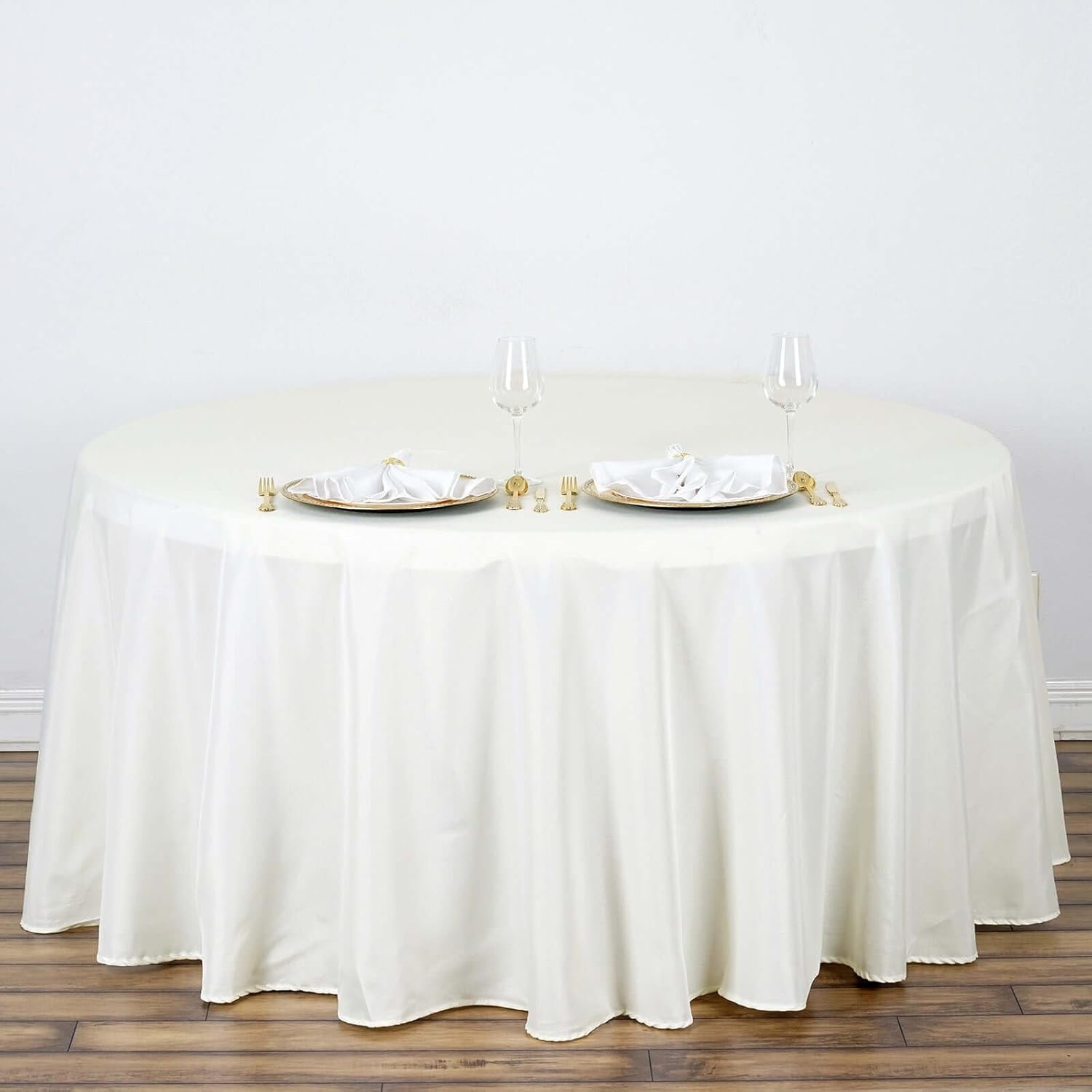 Efavormart Round Tablecloth, 120 Inch Stain & Wrinkle Resistant Washable Table Cloth, Decorative Polyester Fabric Table Cover for Banquet, Wedding, Dining - Ivory
