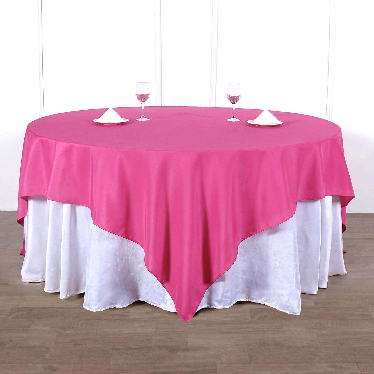Efavormart 90" Square Polyester Table Overlay for Wedding Kitchen Dining Events - Fushia