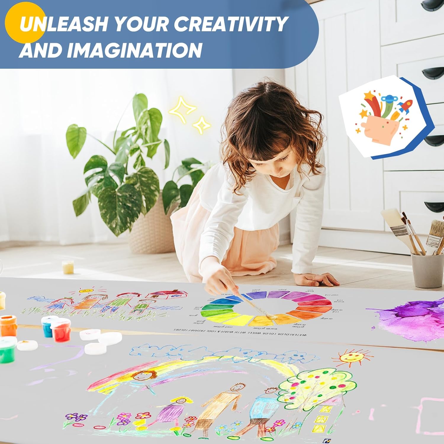 - 【Works with Different Materials】 Our kraft paper is unwaxed and uncoated, which means long-lasting art that won't fade away with time. You can use this craft paper roll with acrylic paints, oil paints, chalk, crayons, markers, gel pens, felt tip pens, fine point pens, watercolors, colored pencils, finger paints and tempera, and there is no smearing or bleeding to protect your table from the different art mediums