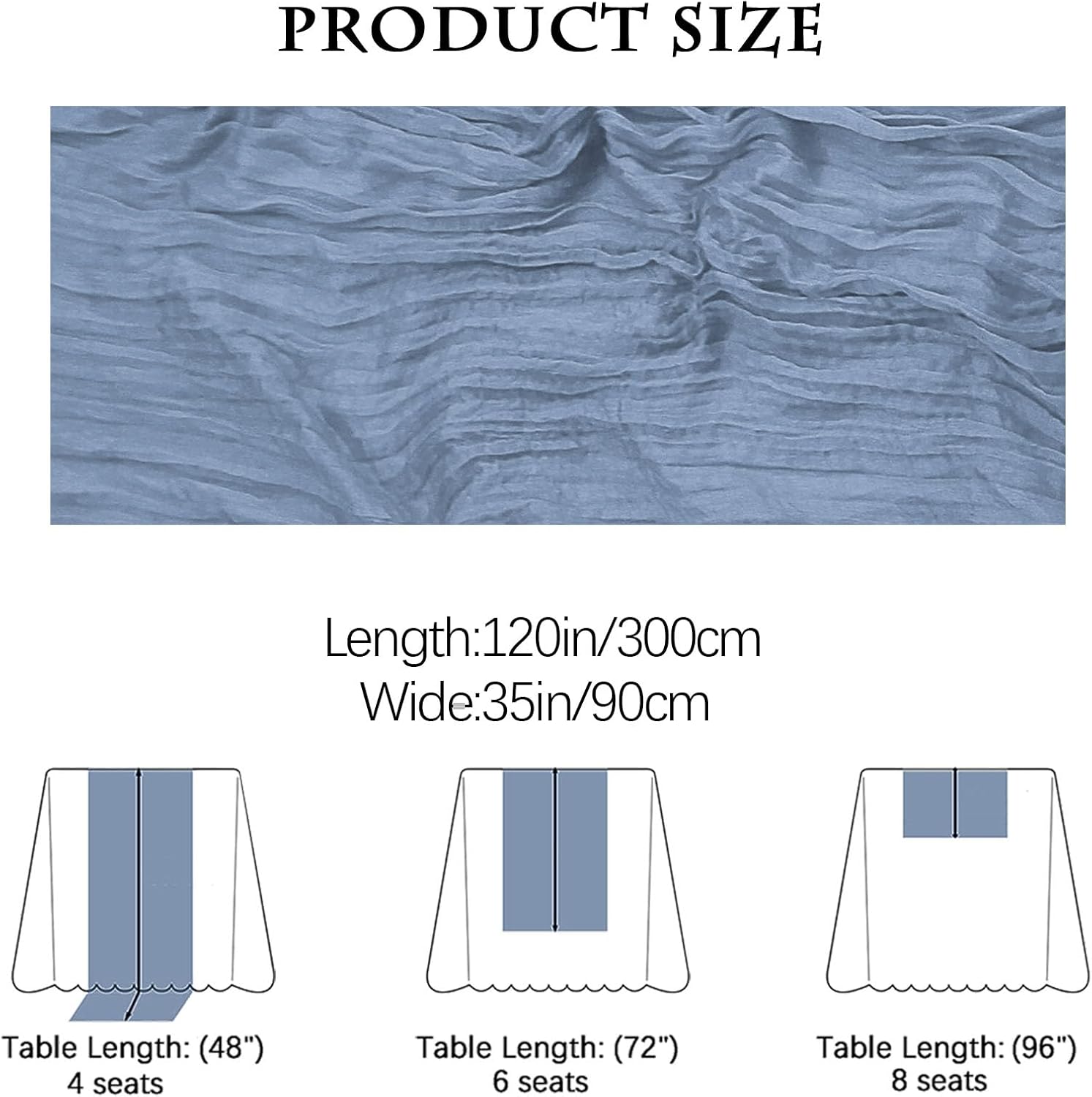 - 🌹【4 Packs 10FT Table Runners】You will receive 4 pcs dusty blue cheesecloth table runner, the quantity is sufficient for your daily use and replacement needs. The dusty blue cheese cloth table runner are 35 x 120 inches / 90 x 300 cm, it's long enough to fit different size tables and chairs. They can also be used as decoration for backdrop draping, ceiling draping, chair cover sashes and gift wrapping, etc, dusty blue table runner can perfectly fit tables or chairs in various event scenarios. There are lots of different colors for you to choose, perfect for romantic and elegant party events.