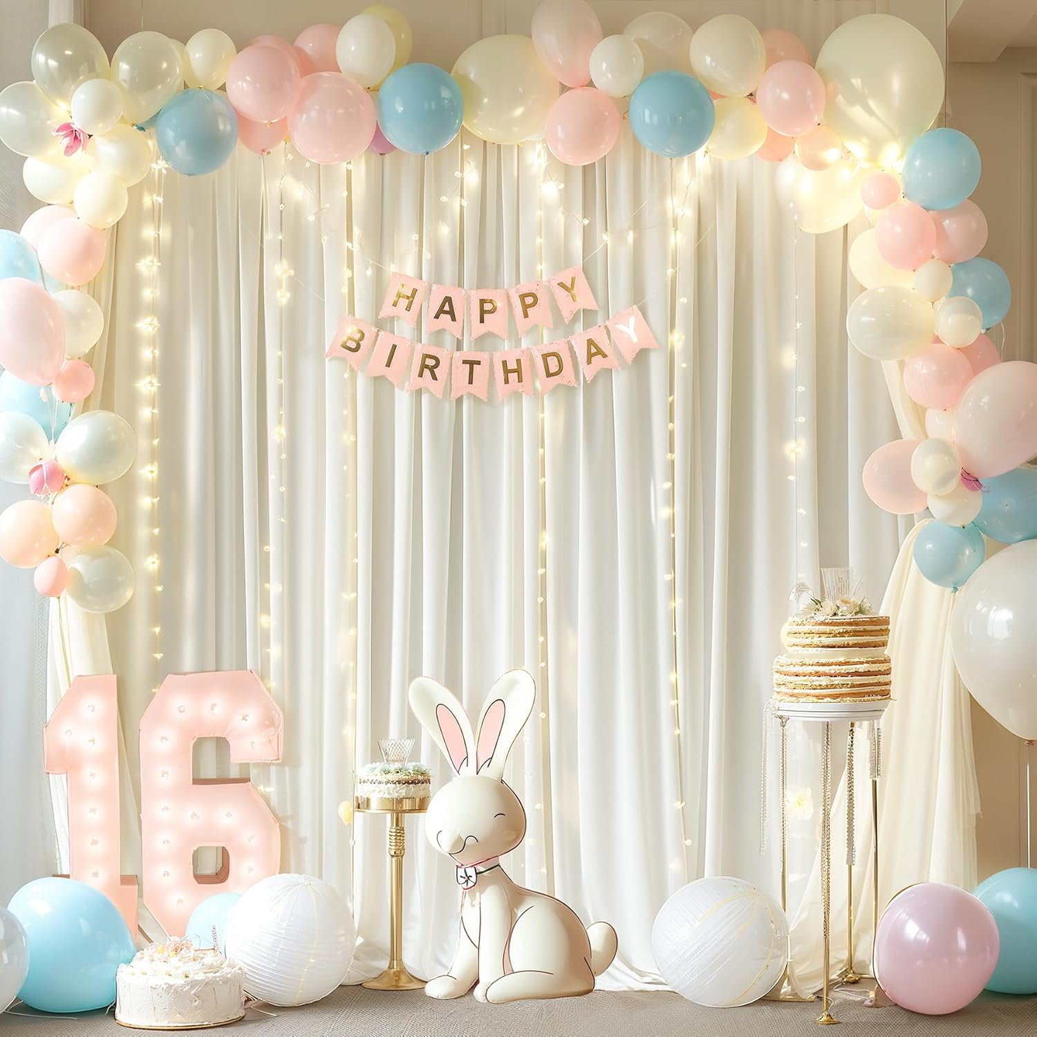 - Ivory Backdrop Curtains with Lights for Parties - Our ivory backdrop curtain can be used indoors and outdoors, they are perfect for baby shower, birthday party, wedding, graduation ceremony, dessert tables, anniversary, New Year's Eve party, stages photography or any other important events. It is also a good choice to use this white backdrop curtains for photoshoot.