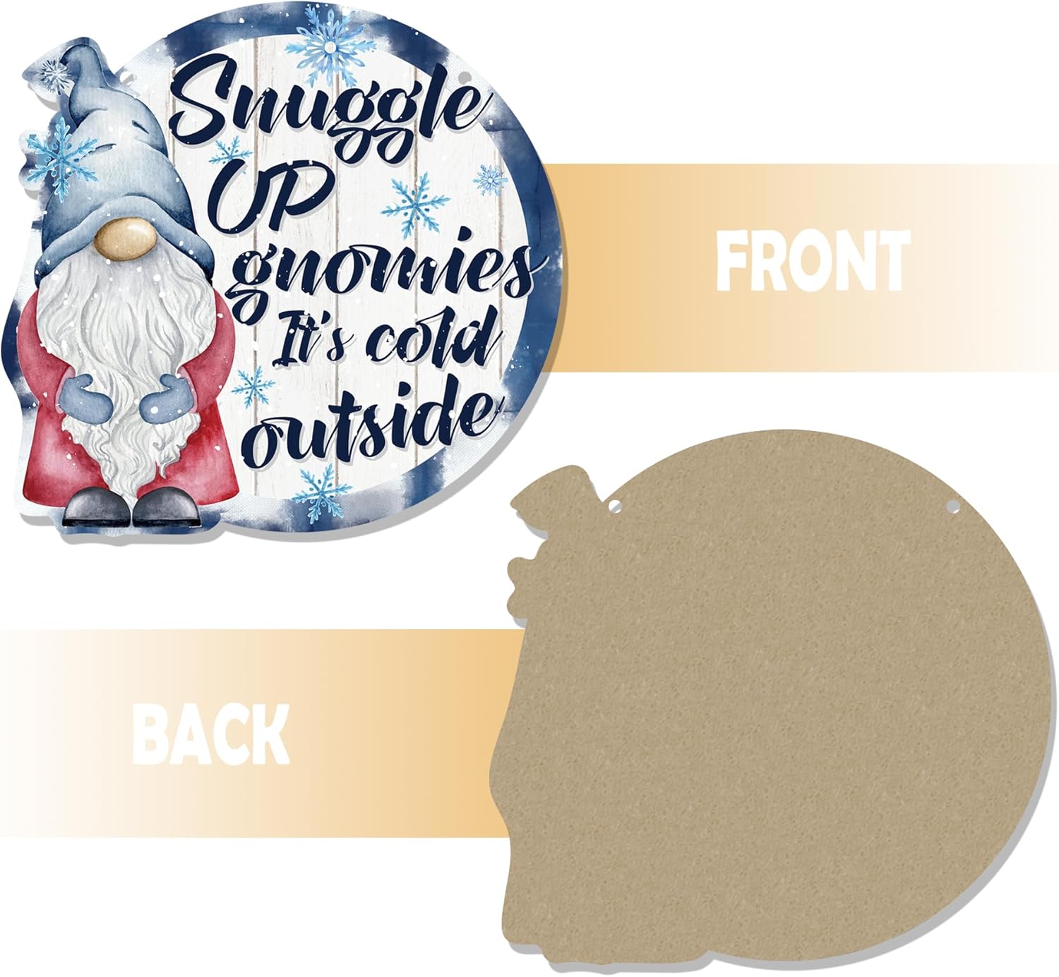 CGBHW Winter Snowflake Snowman Gnome Wooden Sign, Winter Wreath Christmas Holiday Vavy Blue Decoration Hanging Sign Wall Decor, Snuggle up Gnomies It’s Cold Outside Home Door Decor 12 x 12 Inch