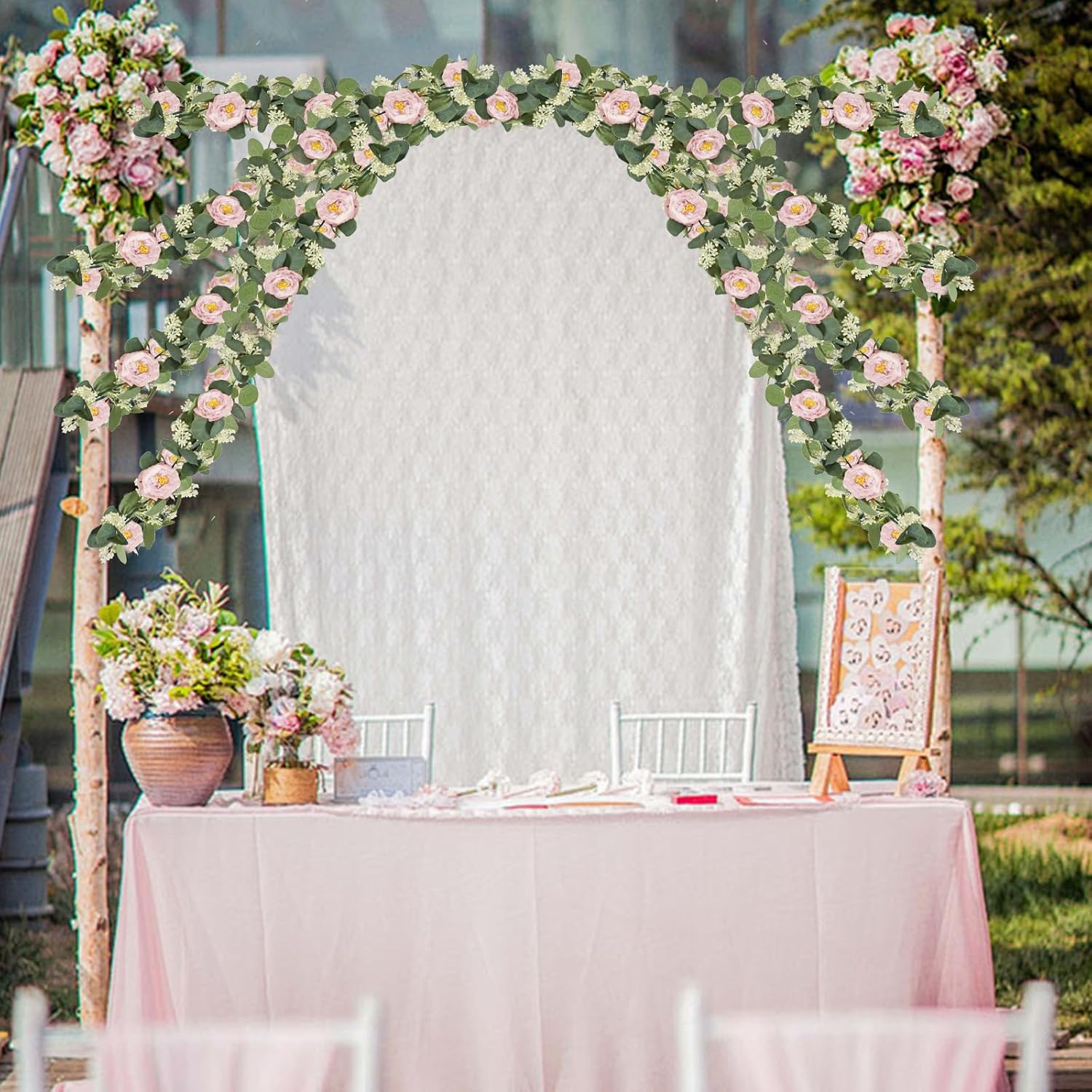 - 🍀🍀【Rose Garland Decor】: The handmade artificial Eucalyptus garland decorations are deal for any wedding or home decoration, such as bedrooms, living rooms, dining table, arches, chairs, backgrounds, corridors, backgrounds, hung on both sides of doors or wedding arches etc. DIY event center. Whether you want to create a romantic atmosphere or add beauty to your life, this fake rose flower vine can blend perfectly.