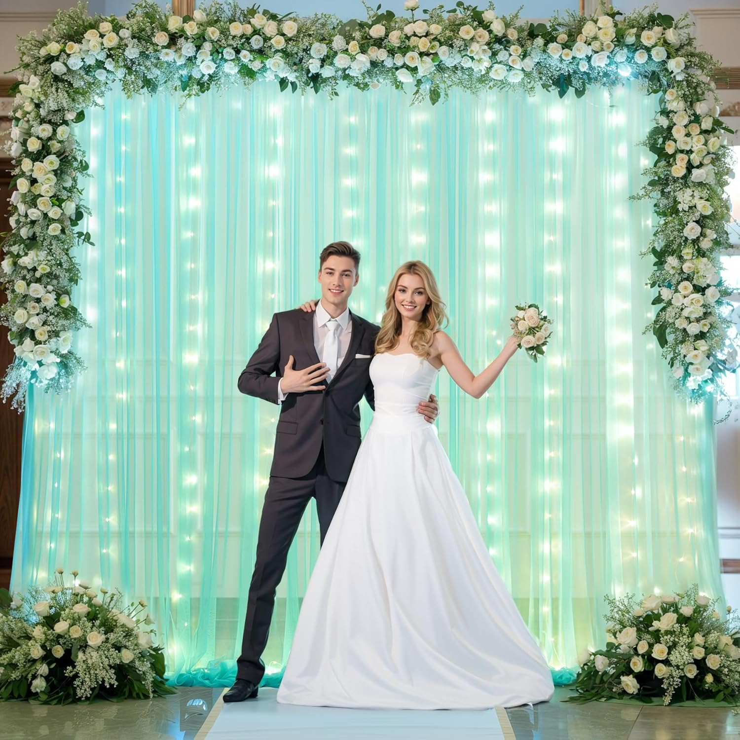 - Sage green sheer backdrop curtains with lights wide range of use : Perfect for wedding backdrops for reception, wedding ceremony, photo booth, baby shower, birthday party, gender reveal, bridal shower, engagement, sage green flower wall backdrop, photography backdrop, photoshoot, graduation, home room decorations, candy buffets, dessert tables background, holiday party, Christmas backdrop curtain decorations or anywhere you want.