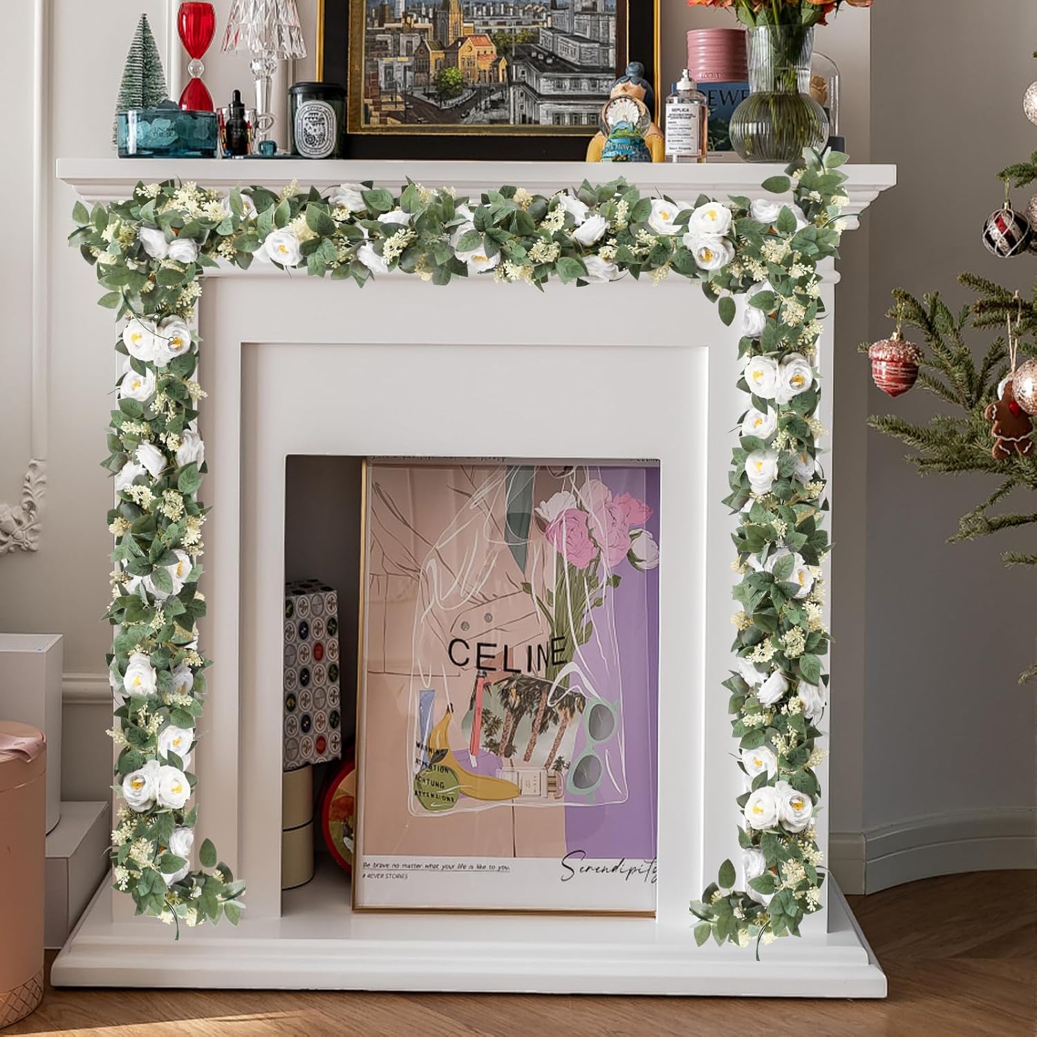 - 🌼🌼Artificial Greenery Garland Size: 2PCS Fake Vine Wreath is approximately 5.9 feet long (length may vary slightly due to the handmade nature of the product). The garland features white romanticism colours and fake green eucalyptus leaves that look both delicate and real.