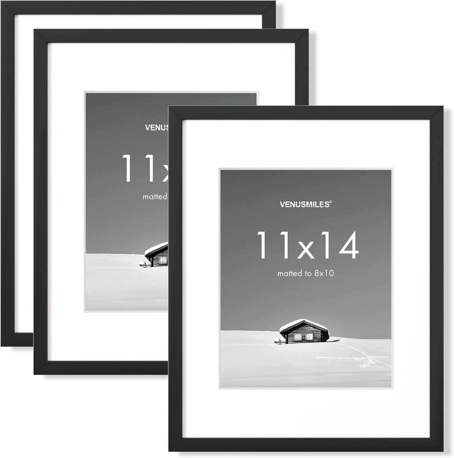11x14 inch Picture Frame, 11x14 Photo Frames with 8x10 Removable Mat - High Definition Plexiglass - Vertical and Horizontal Display - Wall Hanging Frame - Black, 3 Pack