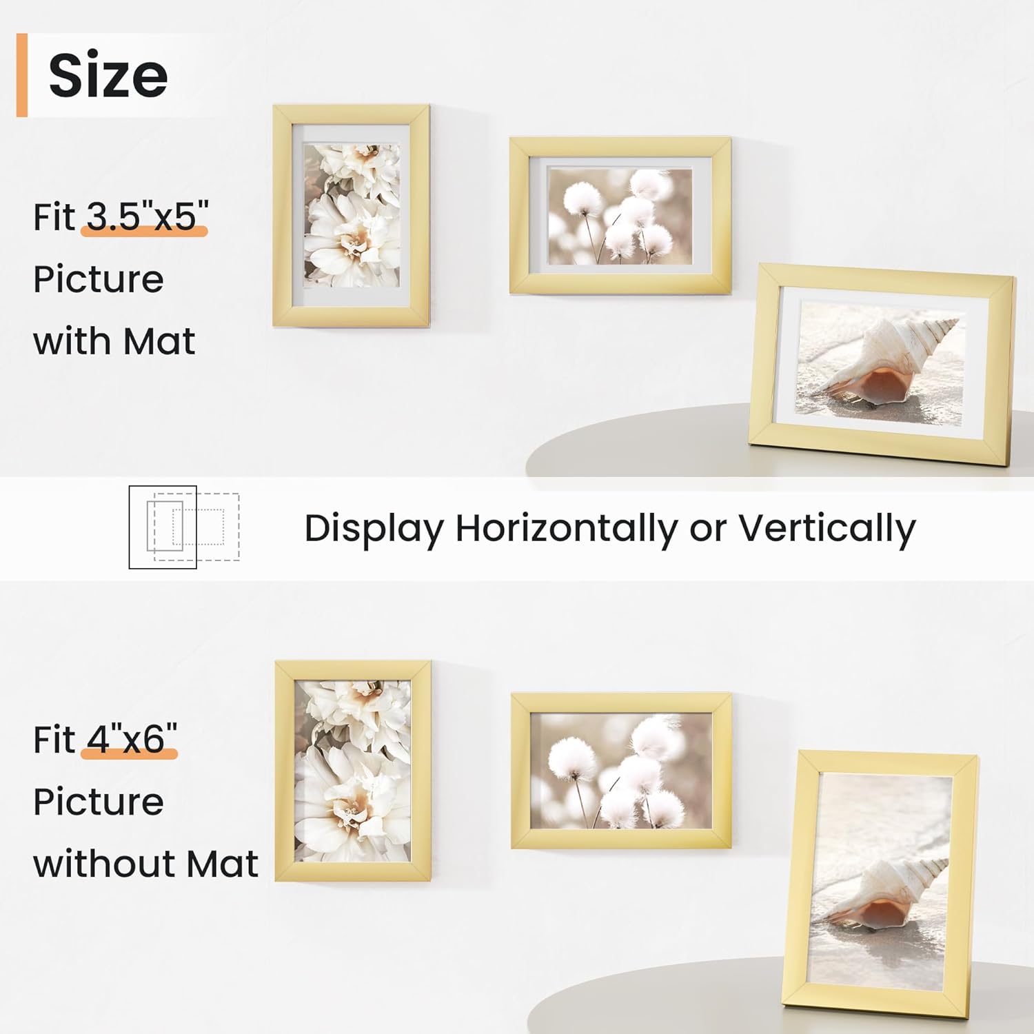 4x6 inch Picture Frame, 4x6 Photo Frames with 3.5x5 Removable Mat - High Definition Plexiglass - Vertical and Horizontal Display - Wall Hanging Frame - Gold, 12 Pack