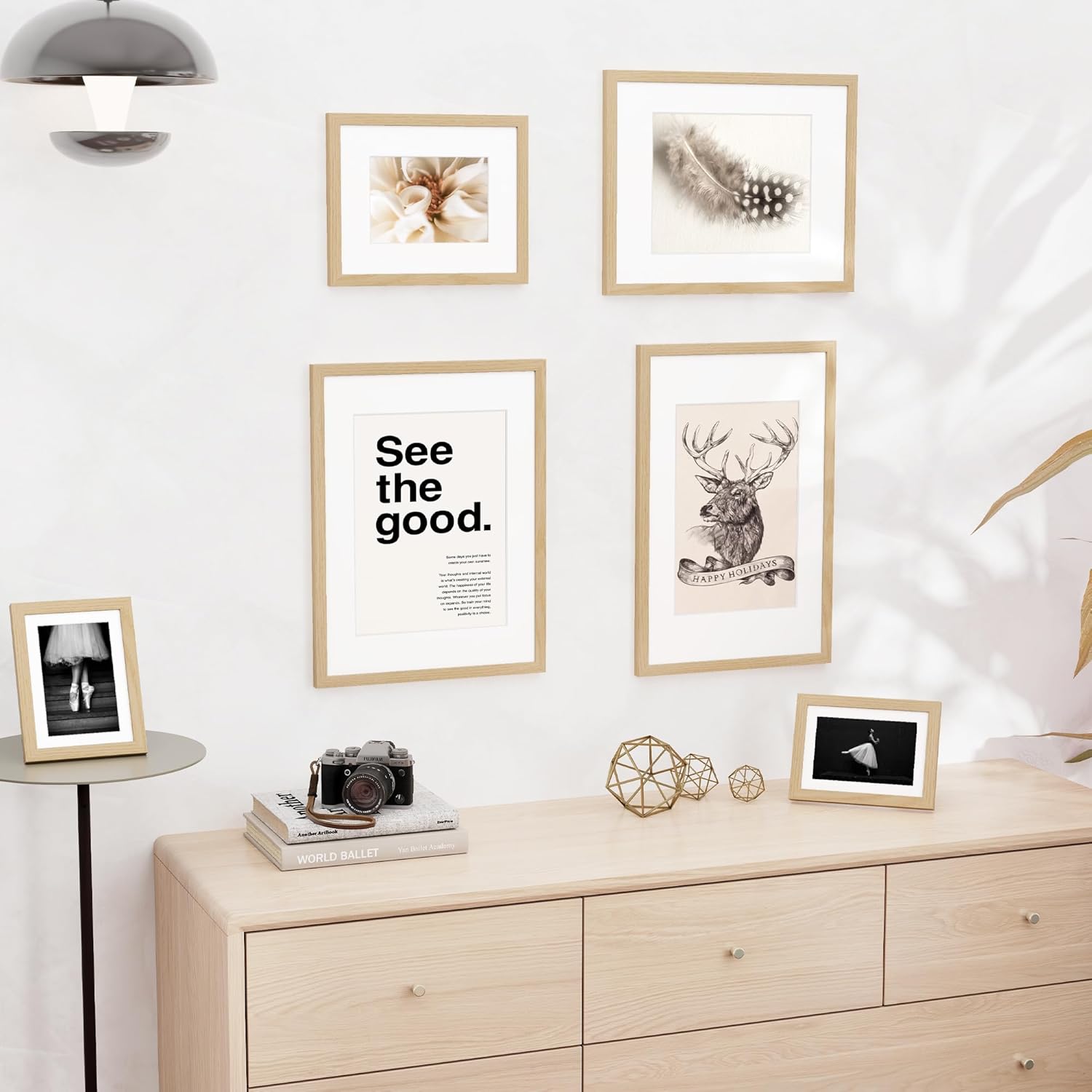 5x7 inch Picture Frame, 5x7 Photo Frames with 4x6 Removable Mat - High Definition Plexiglass - Vertical and Horizontal Display - Wall Hanging Frame - Oak Color, 12 Pack