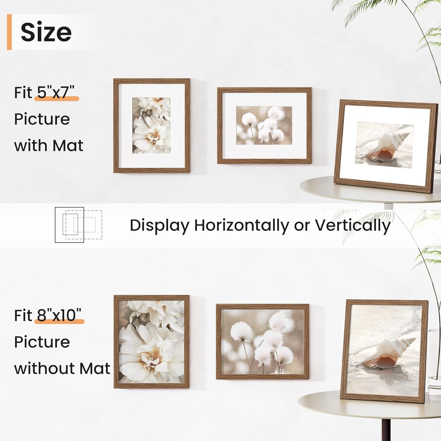 - Vertical & Horizontal Display - Our wall photo frames are versatile and easy to clip and hang. You can mount this plastic picture frame horizontally or vertically, with hanging hardware included. This picture frame maximizes your available space.