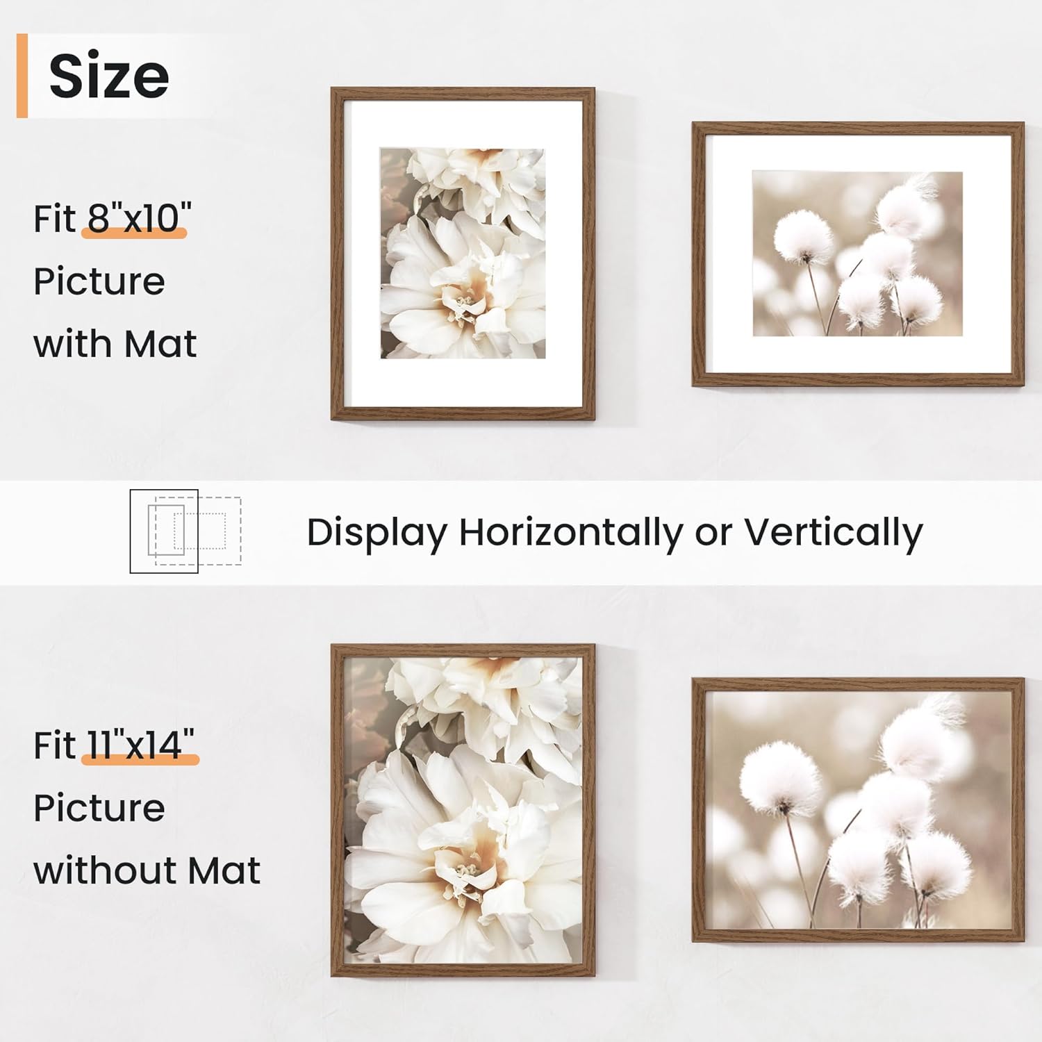 11x14 inch Picture Frame, 11x14 Photo Frames with 8x10 Removable Mat - High Definition Plexiglass - Vertical and Horizontal Display - Wall Hanging Frame - Walnut Color, 12 Pack