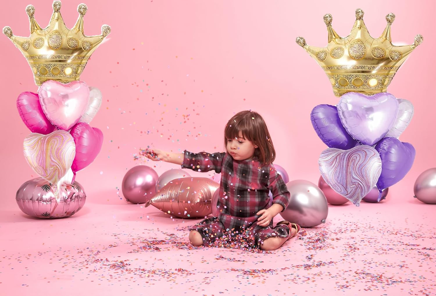 - Festive Balloon Set: This set includes 2 golden crowns, 10 heart-shaped balloons,perfect for birthdays, baby shower,or princess parties.