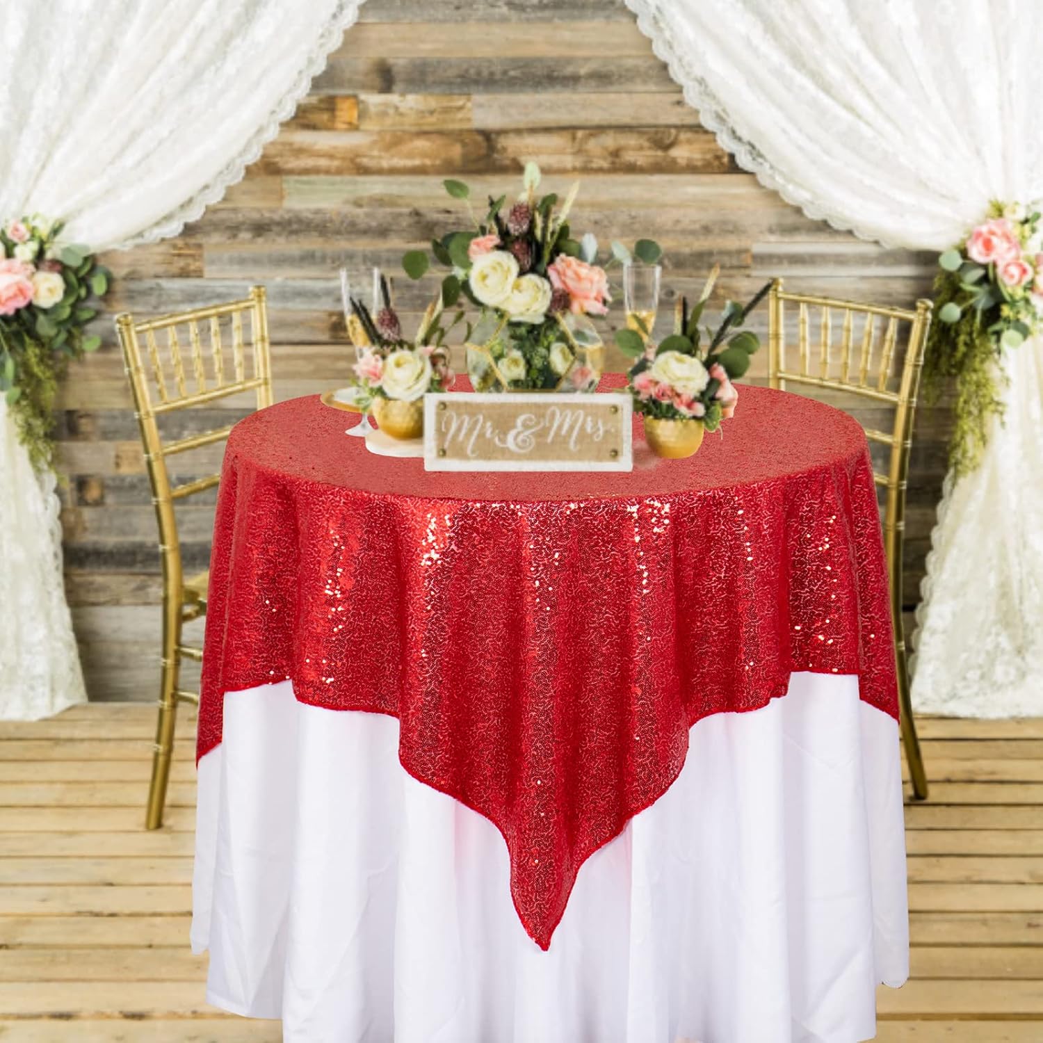 - SIZE OF SEQUIN TABLECLOTH : 2 pack 36x36 Inch red Sequin Tablecloths christmas Table Linen, this small square tablecloth is fit for small round tables under 36''.