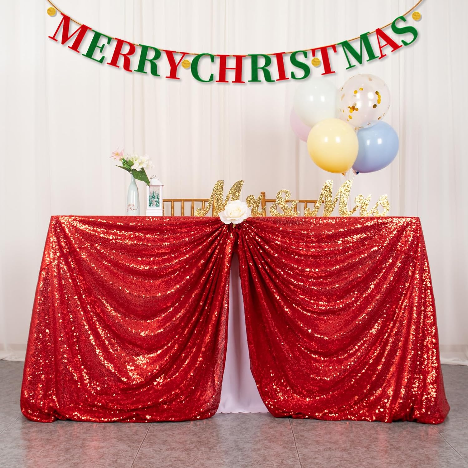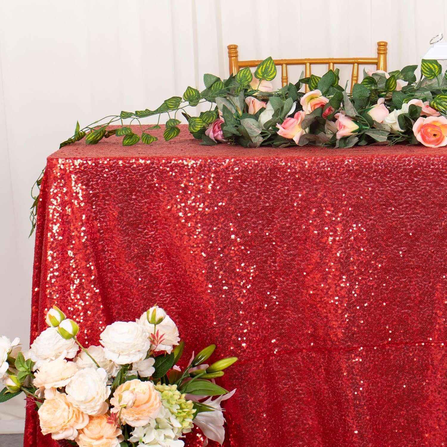- SIZE OF SEQUIN TABLECLOTH : 2 pack 72X72 Inch red Sequin Tablecloths Christmas Table Linen, this square tablecloth is fit for a 4FT round or square table