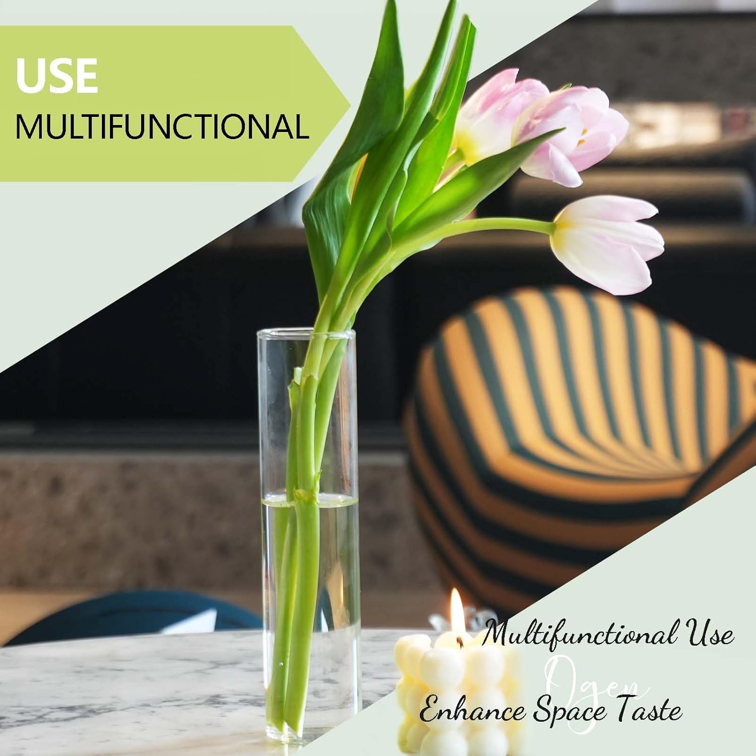 - 🌷【SIMPLE AND ELEGANT DESIGN】: The 18-pack 7.5-inch tall clear straight borosilicate glass vase features straight, textured surface that reveals unparalleled purity of beauty