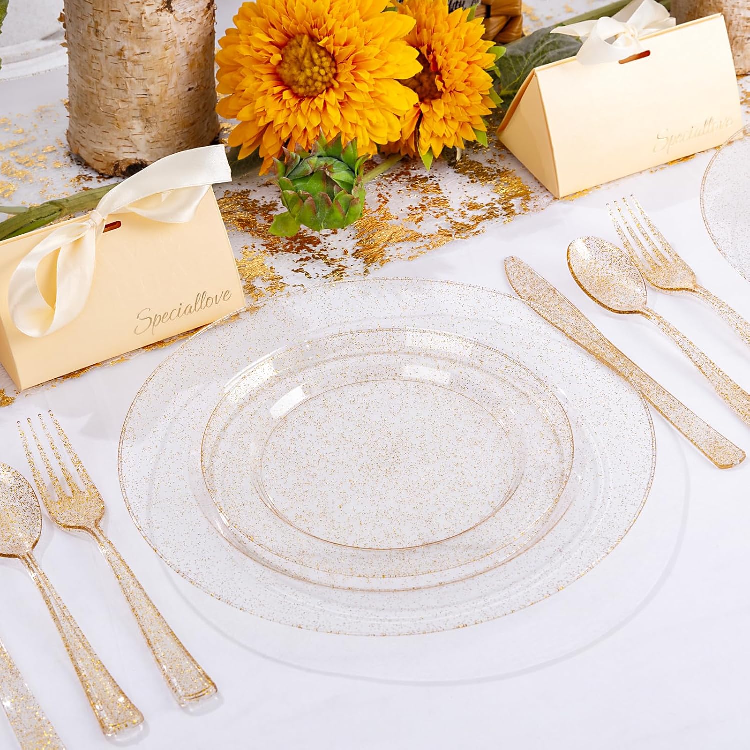 - UNIVERSAL FOR ANY OCCASION: Gold glitter plates are suitable for any occasions, perfect for banquets, weddings, birthdays, graduation ceremony lighting, add elegant style to your party