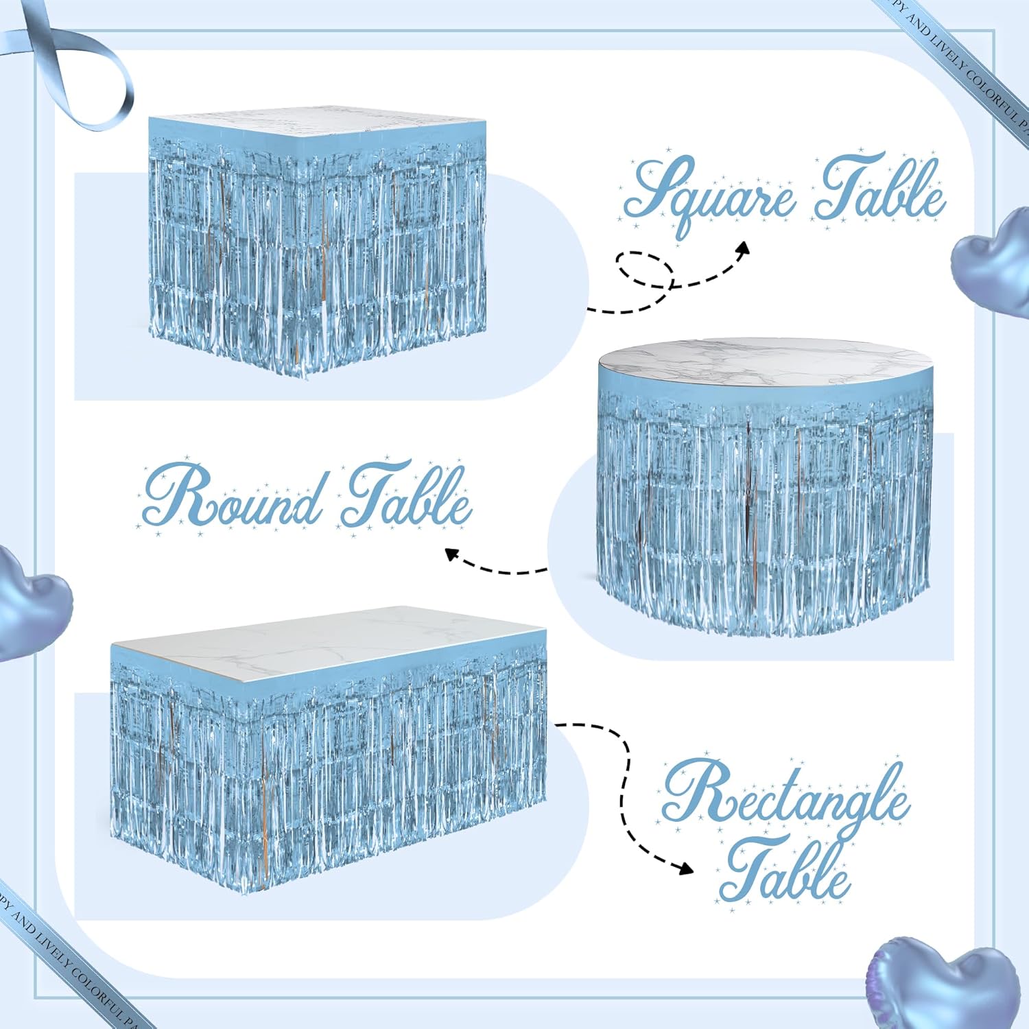 1 Pack Light Blue Table Skirts, 29x108" Metallic Foil Tinsel Fringe Table Skirts for Rectangle Tables Streamer Curtains Backdrop, Party Decorations for Birthdays Weddings Holidays