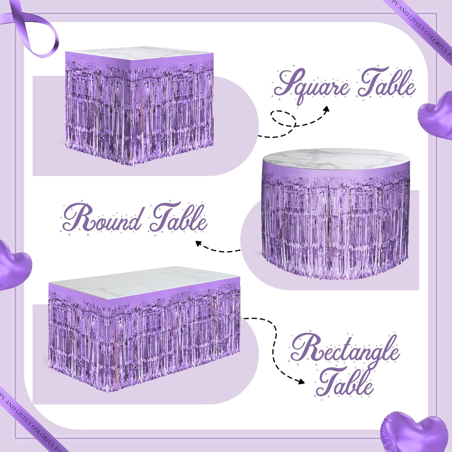 1 Pack Light Purple Table Skirts, 29x108" Metallic Foil Tinsel Fringe Table Skirts for Rectangle Tables Streamer Curtains Backdrop, Party Decorations for Birthdays Weddings Holidays