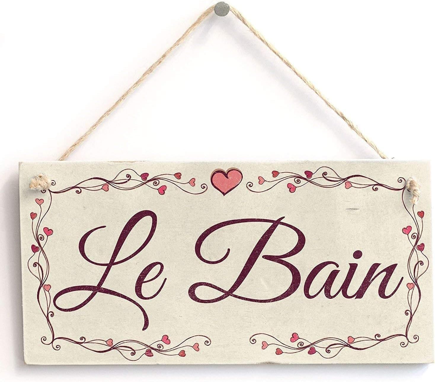 Rustic Wooden Signs Le Bain Heart Wood Signs Plaque Bathroom Sign Wall Art Decor Kitchen Cafe Pub Decor Gift 6x12 INCH