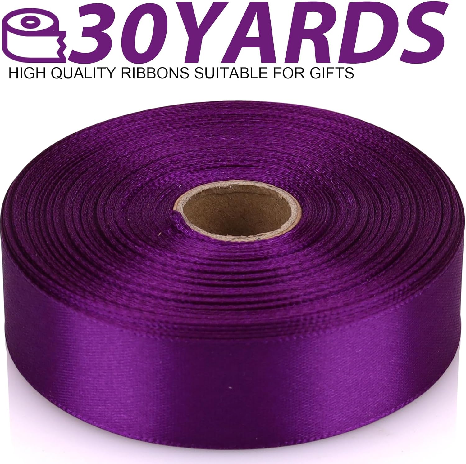 Purple Ribbon 7/8 Inch 30 Yards Satin Craft Ribbon-Single Face Polyester Ribbon for Handmade Roses,Gift Wrapping,Timeless Flower,Bouquets,Wedding and Party Decoration