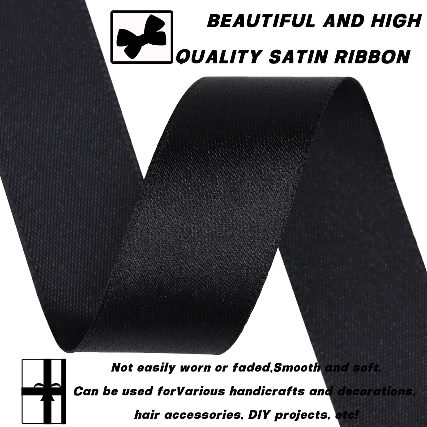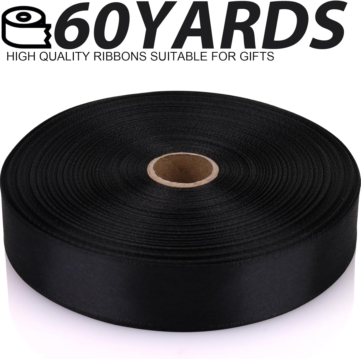Black 7/8 Inch 60 Yards Satin Craft Ribbon - Single Face Polyester Ribbon for Handmade Roses, Gift Wrapping, Timeless Flower, Bouquets, Wedding and Party Decoration