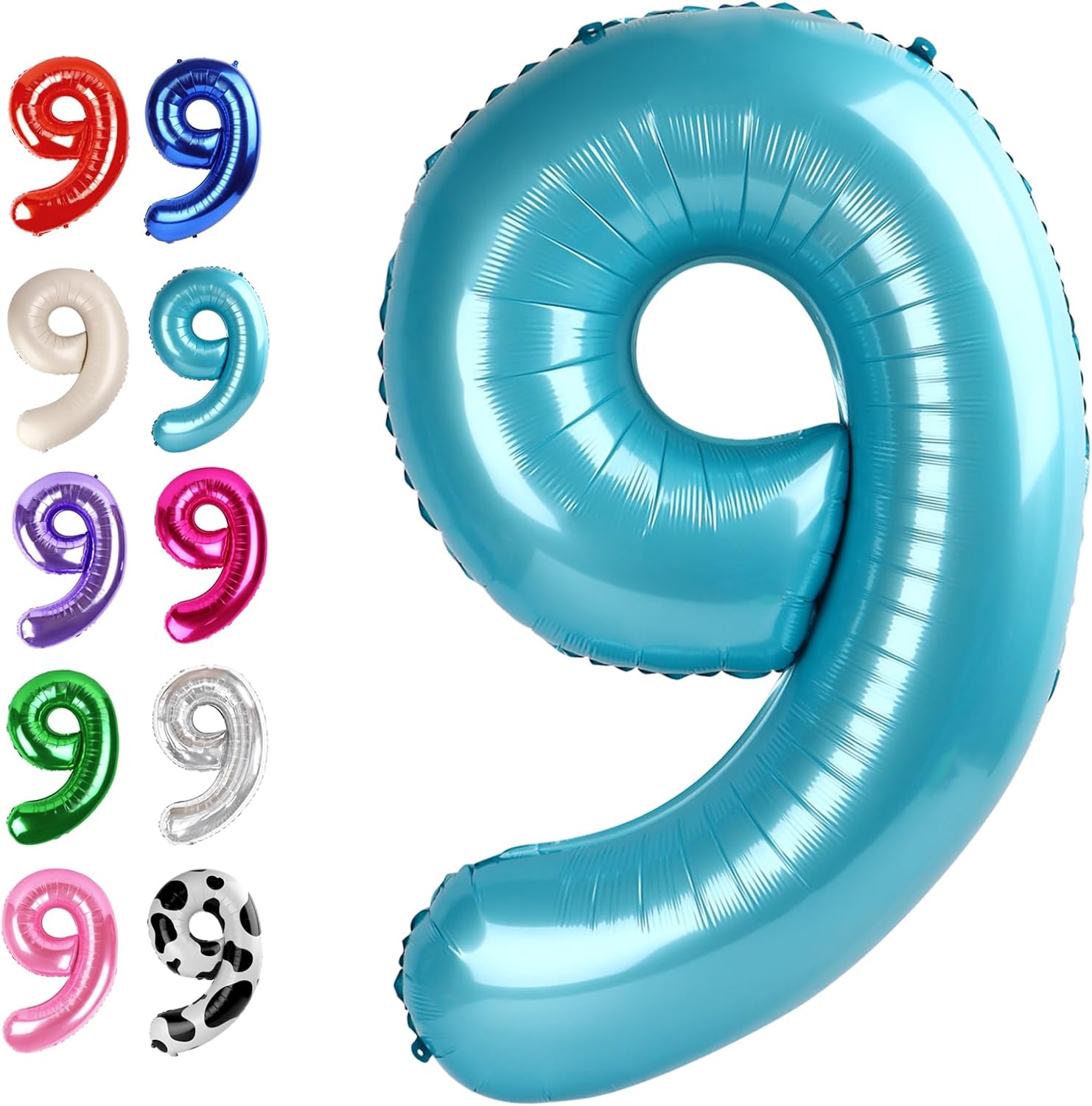 - 1.Elegant Understated Pearl Blue Number Balloons: You will receive an uninflated 40 inch number 9 balloon.Large number balloons are always the best statement of romance and surprise. Pearl blue balloons symbolize vitality exoticism, adding glamour to birthday parties. Bright Pearl blue and huge size make birthday decorations for men a highlight of special parties. Choose one or more numbers from 0-9 number balloon, and use 9 19 29 49 59 69 90 99 balloon numbers to create a lively charming party!