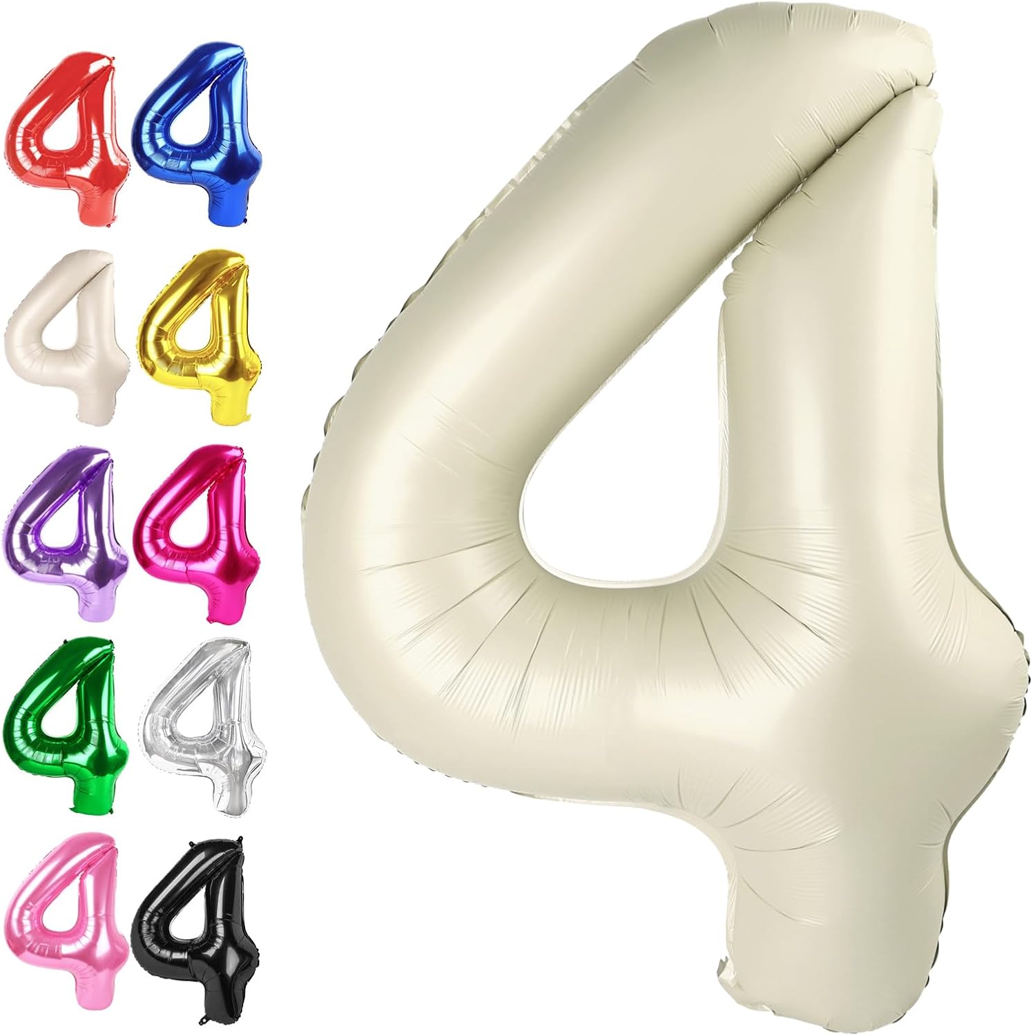 - 4.Perfect Size Simple Installation: 40 inch number 4 balloons,huge size and beautiful cream white 4 balloon appearance.Birthday number balloons can reduce the complexity of installation, you can use a straw at the balloon 4 hole, with natural air to blow and deflate the giant 4 balloon, filled 90% of the seal, without fingers tied, greatly reduce the installation troubles for you. After the birthday balloons men party,use a straw or deflate yourself, Amazing number 4 balloon cream white!