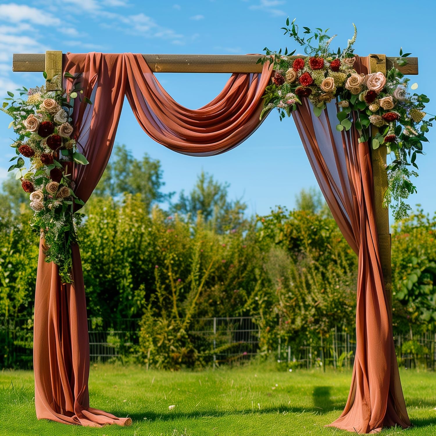 Wedding Arch Draping Fabric 2 Panels 28.7" x 20FT Terracotta Sheer Chiffon Backdrop Drapes for Wedding Ceremony Birthday Party Bridal Shower Outdoor Decoration