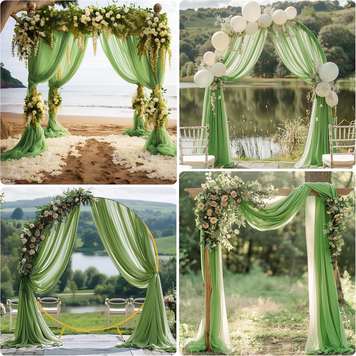 Wedding Arch Draping Fabric 1 Panel 28.7" x 20FT Sage Green Sheer Chiffon Backdrop Drapes for Wedding Ceremony Birthday Party Bridal Shower Outdoor Decoration