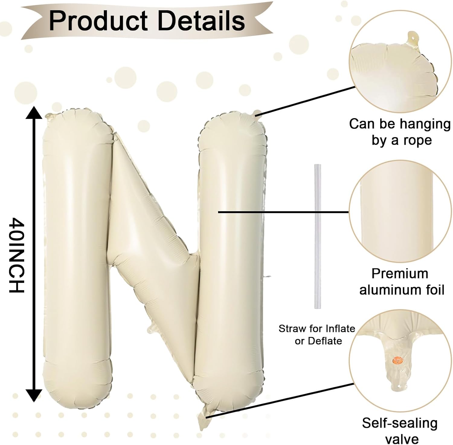 - Cream White Letter N Balloon 40 Inch: Includes 1pc giant beige "N" letter balloon and 1 straw for easy inflation and deflation. Our elegant big beige balloons are perfect for personalized parties. With 26 letters (A-Z) and numbers (1-9) available, you can mix and match to fit your theme.