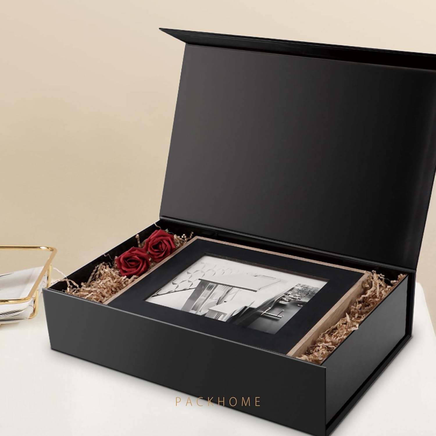 PACKHOME Extra Large Gift Box 17.5x11.3x4.3 Inches, Sturdy Shirt Box with Magnetic Lid for Clothes and Large Gifts (Glossy Black)