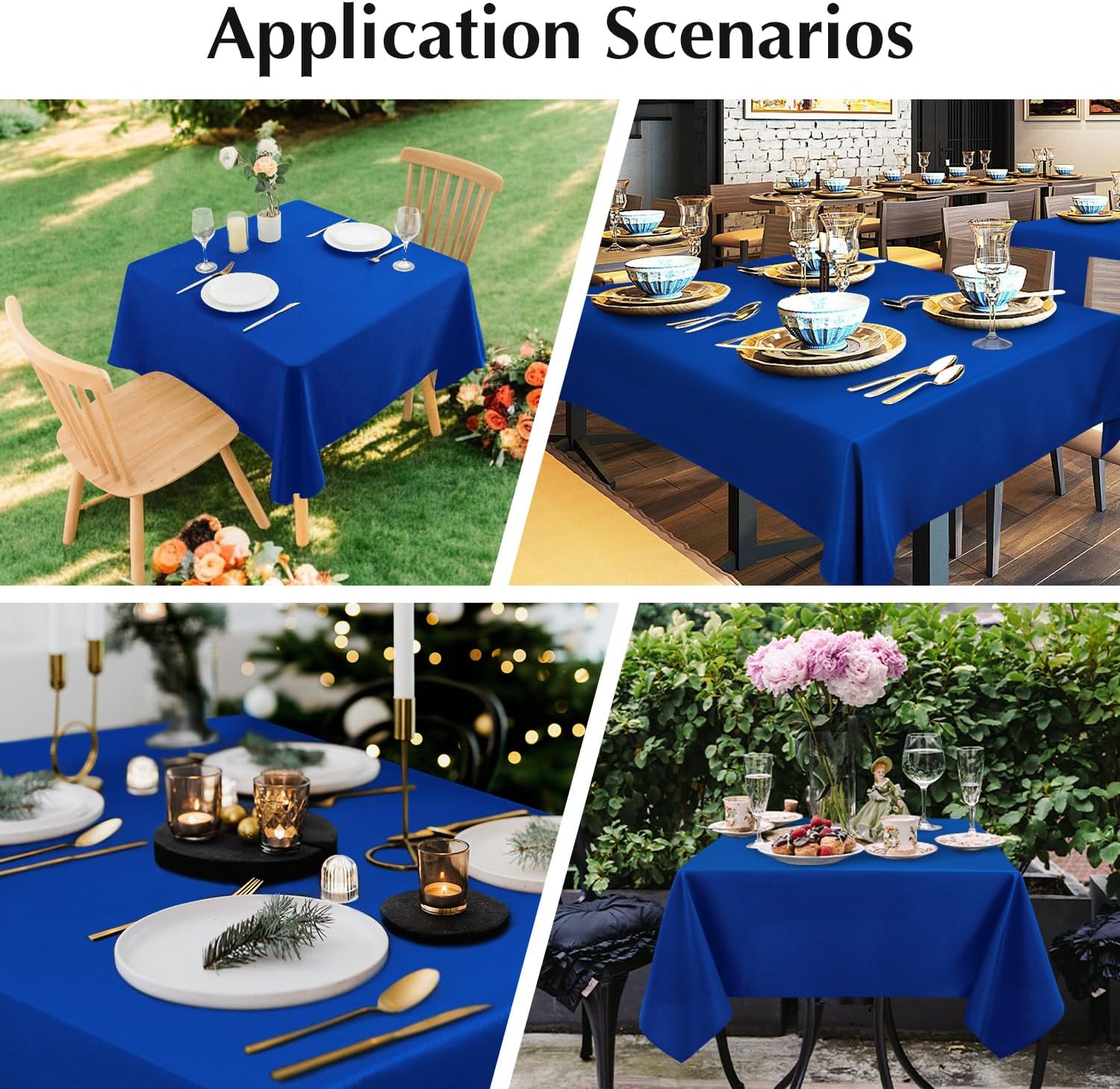 - Using Occasions: Whether it is a formal or daily occasion, whether there are indoor or outdoor activities, these simple and elegant tablecloths can be matched. You can use these dining tablecloths for weddings, parties, banquets, celebrations of various holidays, ceremonies, business settings, hotels, restaurants, dinners, etc. Besides, these square washable table cloths can also decorate your home, adding a touch of elegance and romance to your dining and everyday life