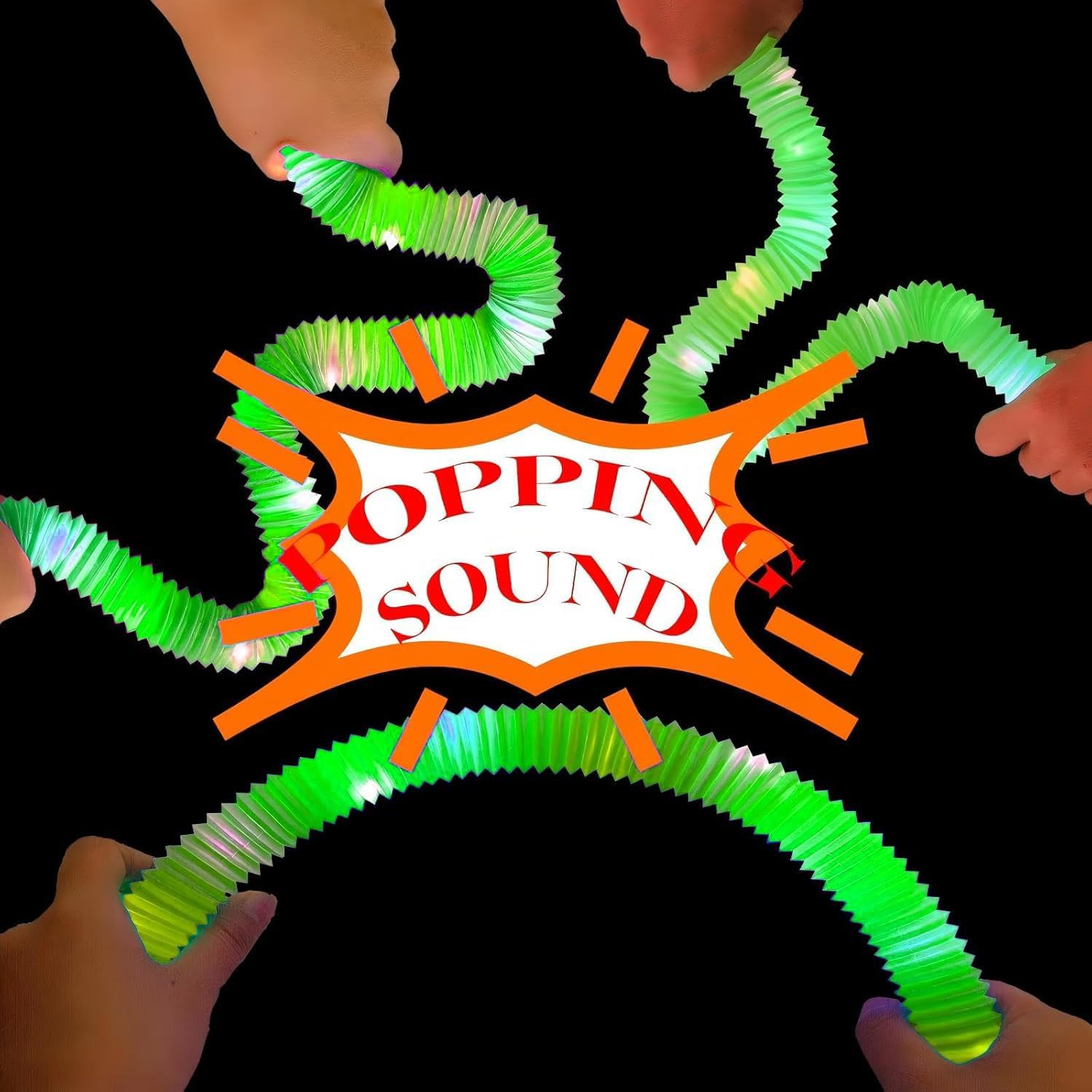 - When you stretch or twist the led pop tubes, it will make a satisfying "pop" sound and special touch, which can help to calm down and relieve anxiety by diverting attention to popping sounds. Nice choice as a playing kids party favors for indoor and outdoor