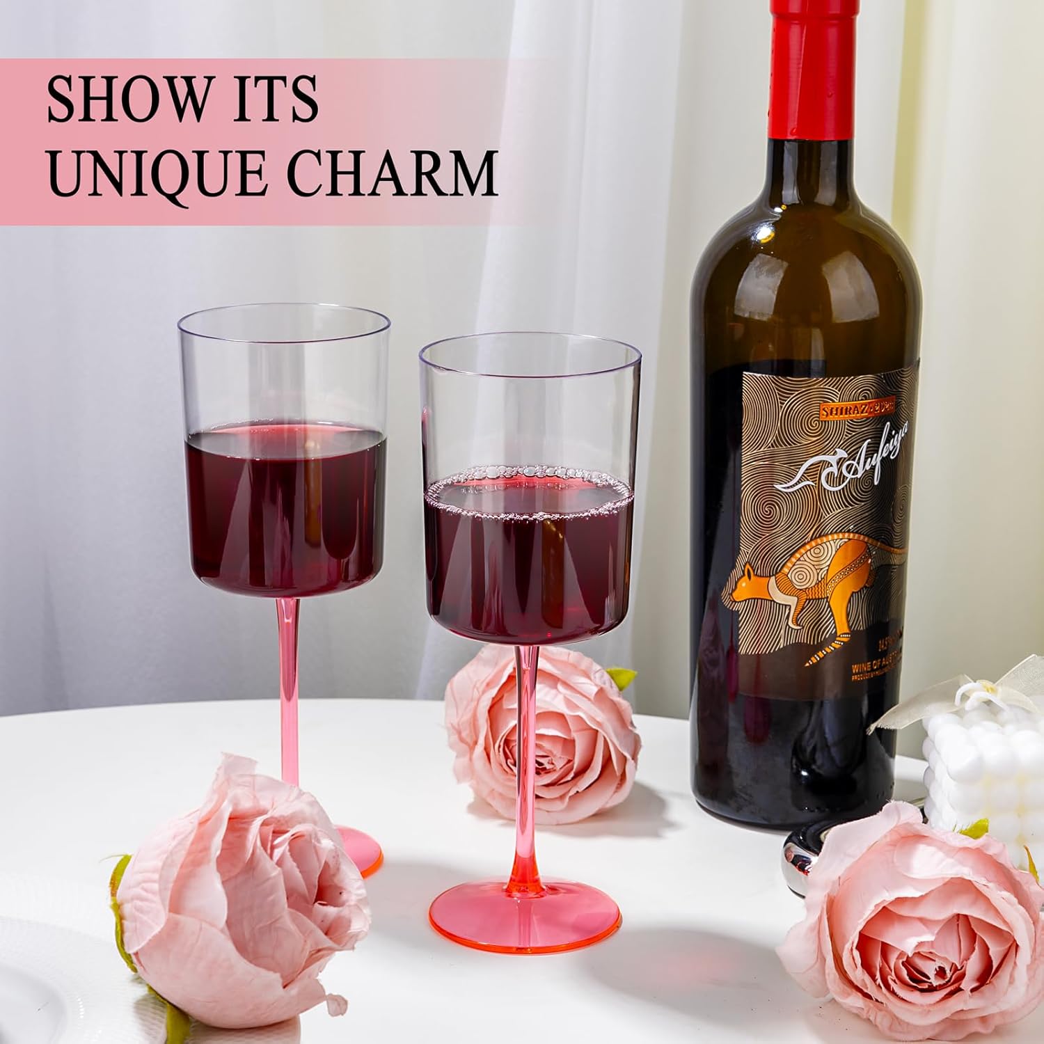 - STYLISH PINK STEM: The pink stem adds a pop of color, making these plastic vintage wine glasses a unique and eye-catching addition to your tableware collection. Whether you're hosting a wedding reception, outdoor BBQ, or poolside gathering, these glasses will stand out.