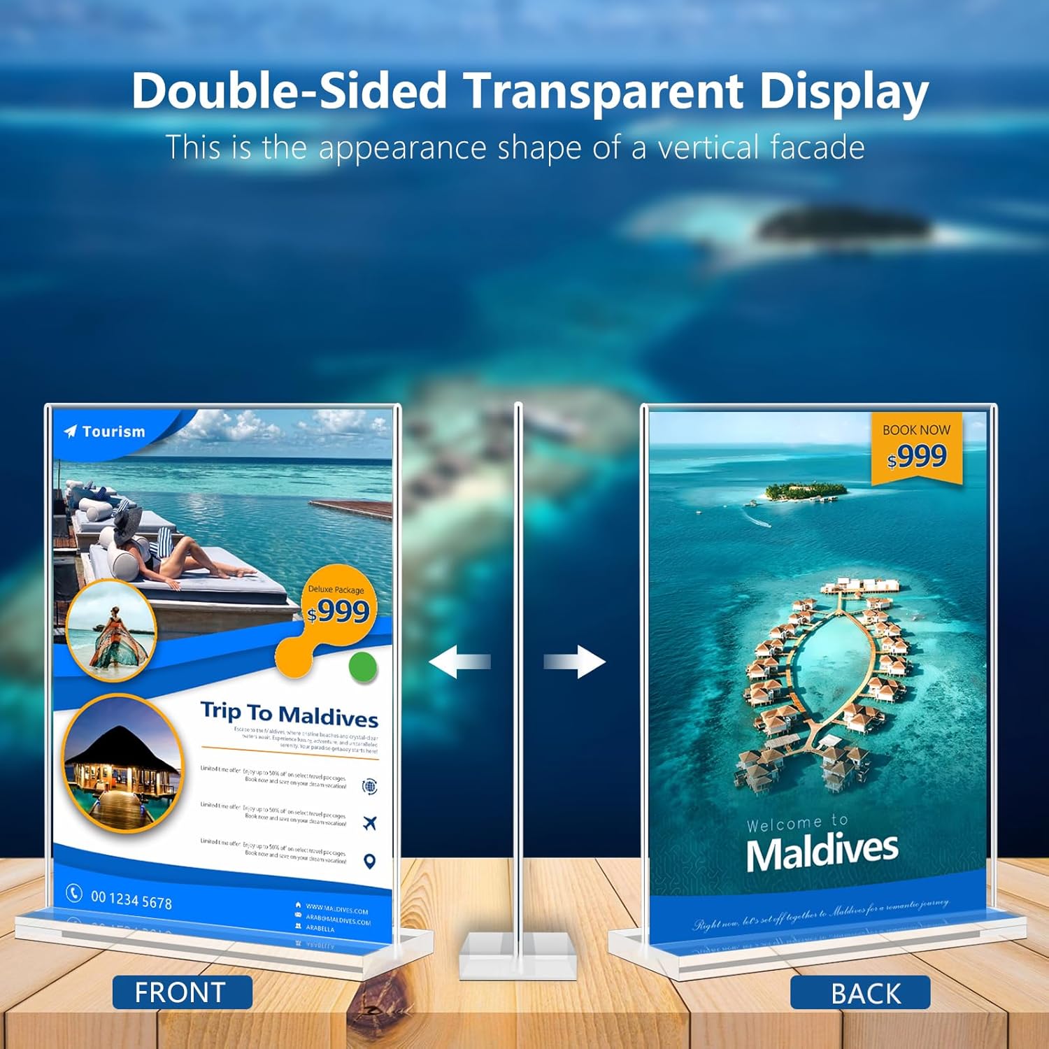 - Double-Sided Display Stands: Pro Tip-- Before using your display stand, make sure to remove the protective film from both the acrylic panel and the base. This will ensure a crystal-clear and ultra-transparent display stand. Unlike slanted back sign holders that only display on one side, our double-sided design allows your flyers to be showcased and protected on both sides