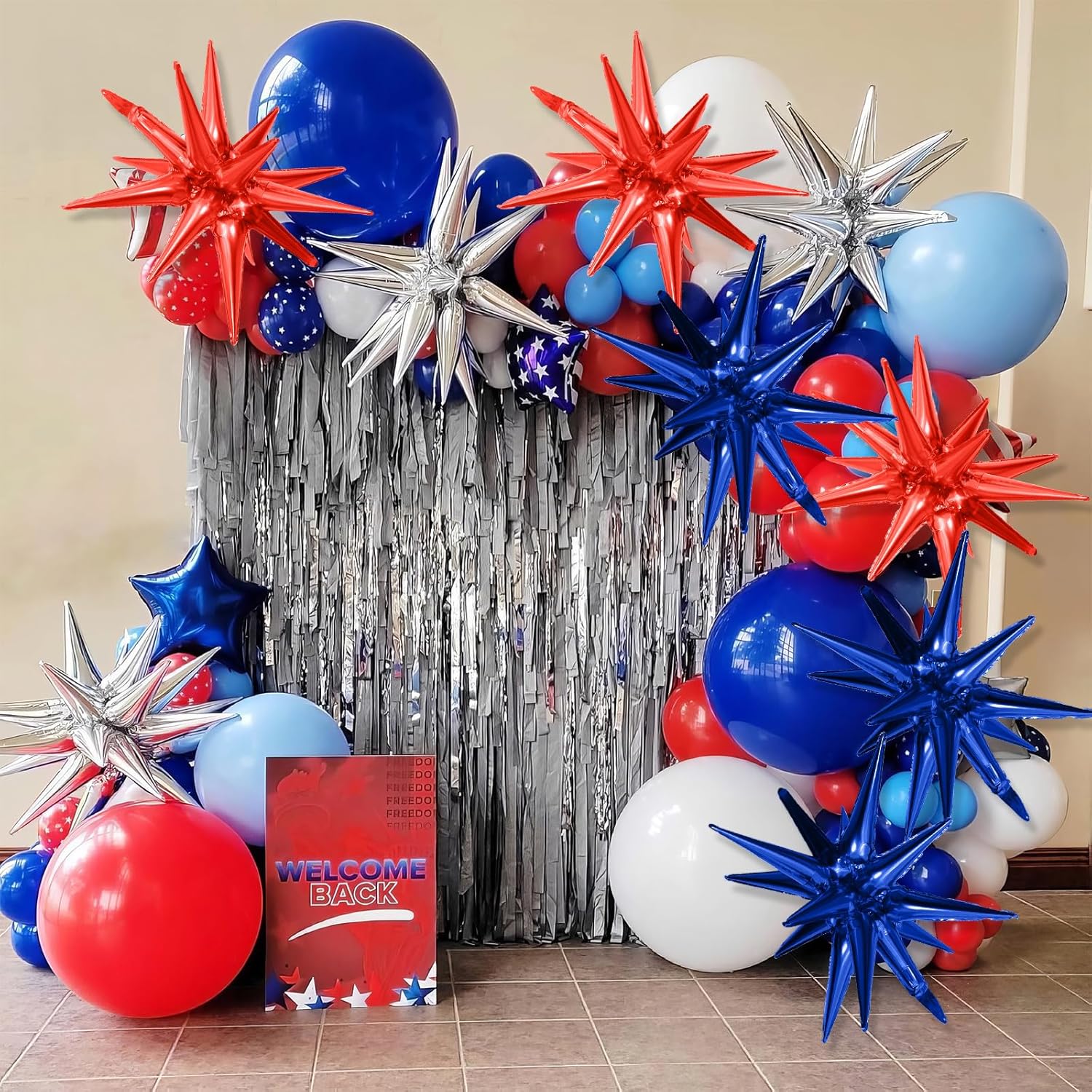 - Widely Application:Our blue red silver star balloon set are great for birthday,anniversaries,graduation,baby shower,opening events,engagement,disco party and all kinds of theme party,can be decorated indoors or outdoors,great party decorations choice!