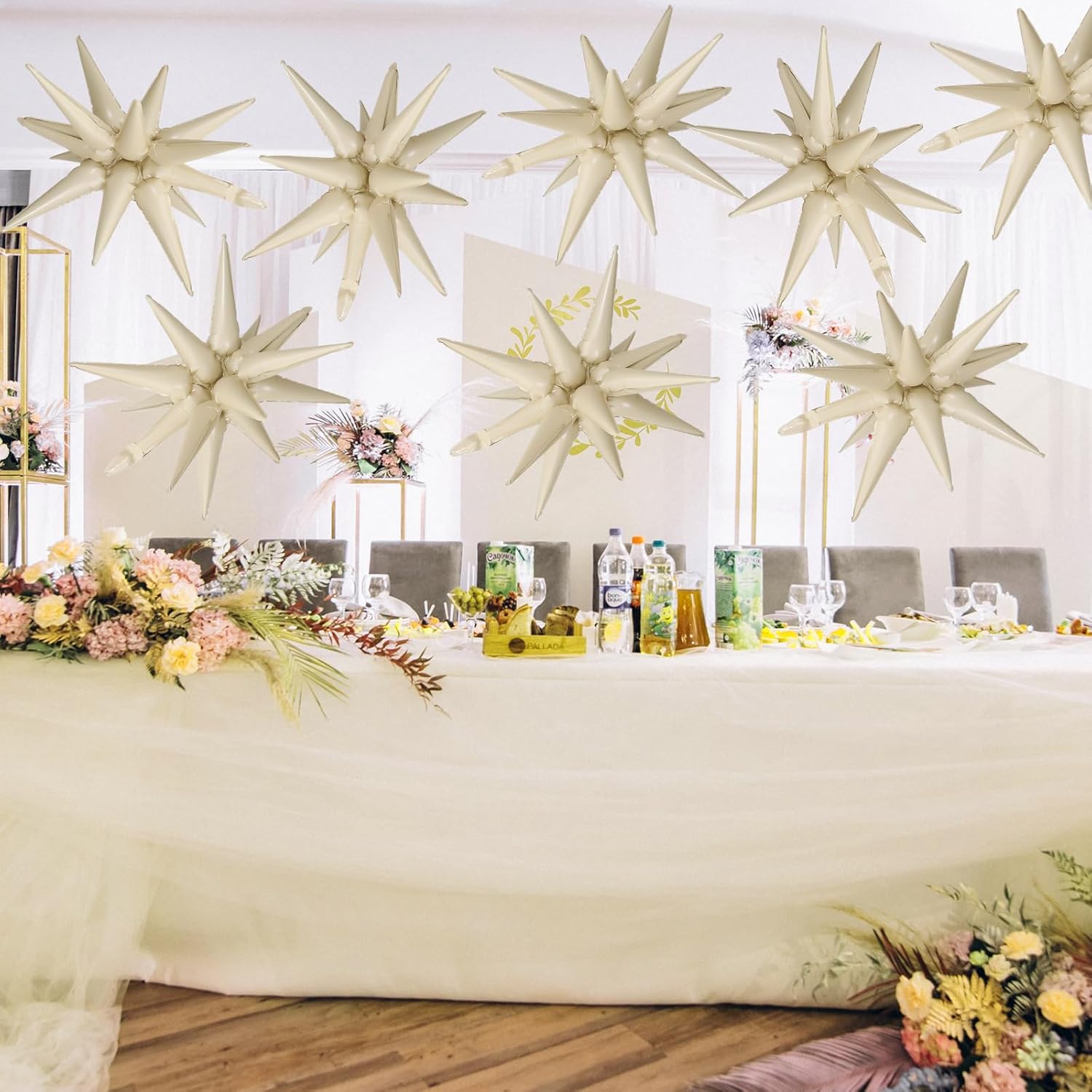 - Cream White Star Balloons Set:Package include 9pcs 22Inch cream white explosion star balloons.Large enough to help you better decorate your party.