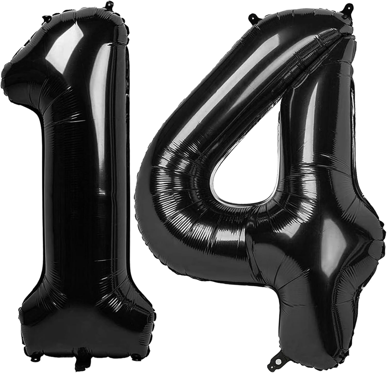 - 1.Elegant Understated Black Number Balloons: You will receive an uninflated 40 inch 14 balloon number. Big number balloons are always the best statement of romance and surprise. Number foil balloons symbolize vitality exoticism, adding glamour to birthday parties. Bright metallic black and huge size make 14 black balloons a highlight of special parties. Choose one or more numbers from 0-9 number balloon, and use 14 41 birthday balloons to create a lively and charming party!