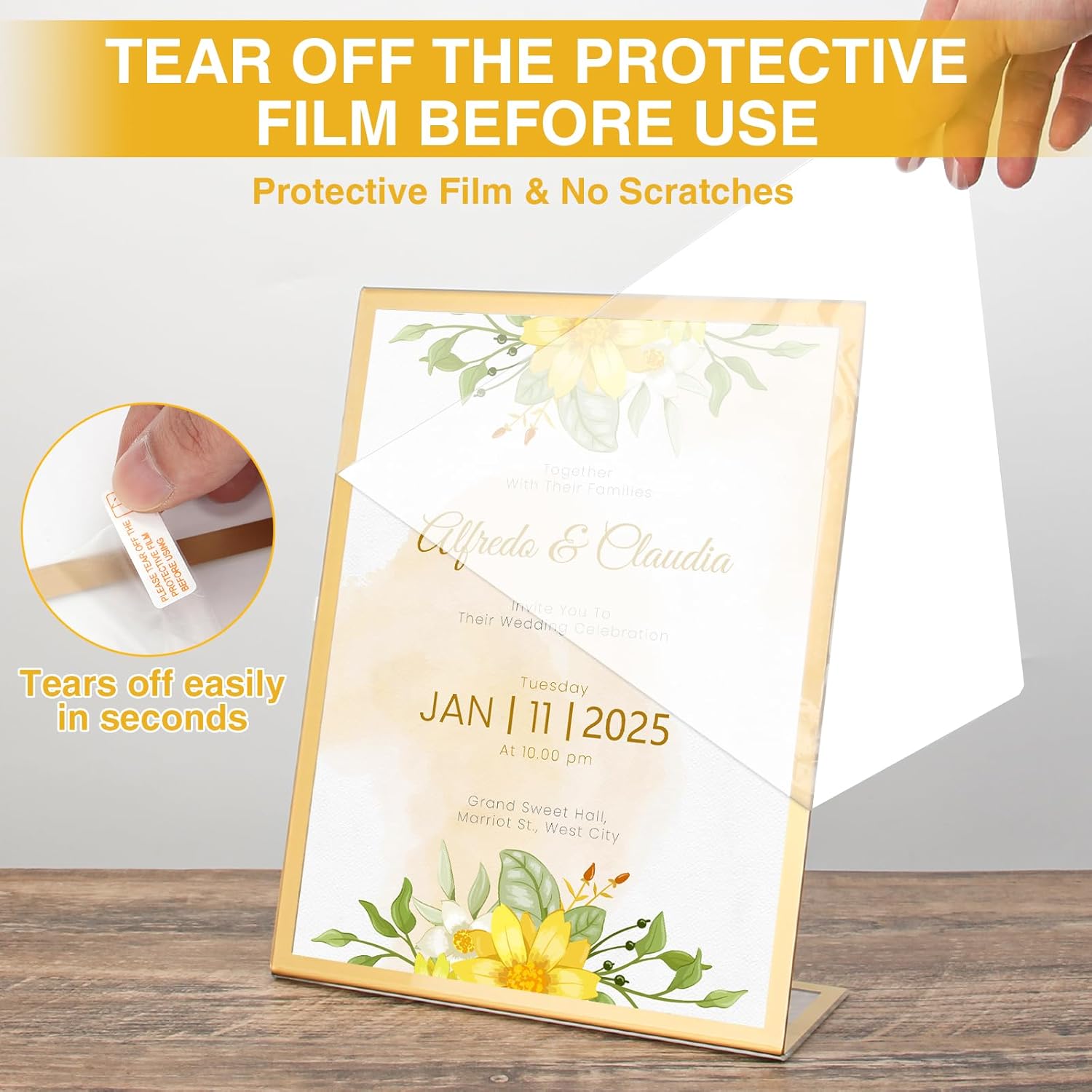 - Easy to Use: Each of our Acrylic Sign Holder comes with a peel off film guide, follow the red arrows to peel off the film in seconds, and the plastic sign holder has an opening on its side for easy paper insertion