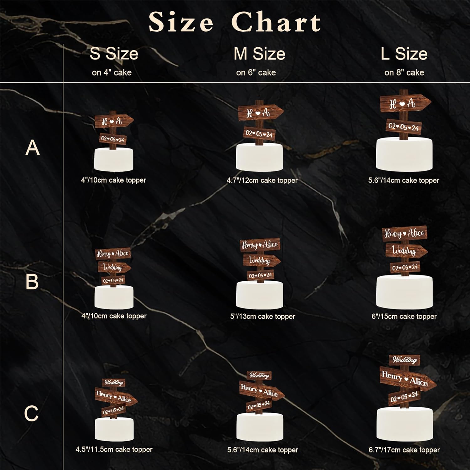 - UV printing technology: crisp and vibrant wood grain details printed on the cake topper will enhance the rustic charm of your wedding.