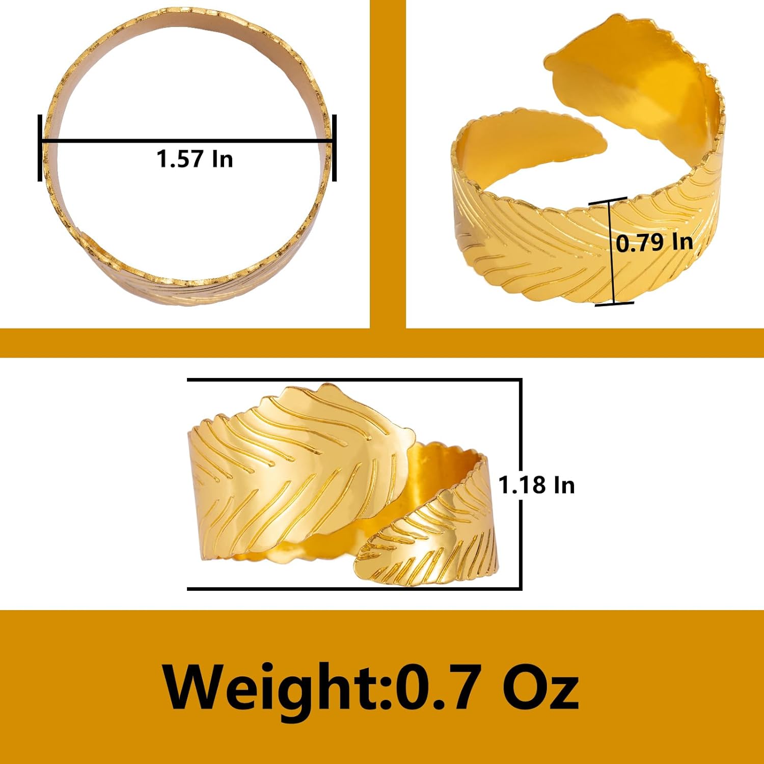 Gold Leaf Napkin Rings Set of 8, Metal Leaves Napkin Ring