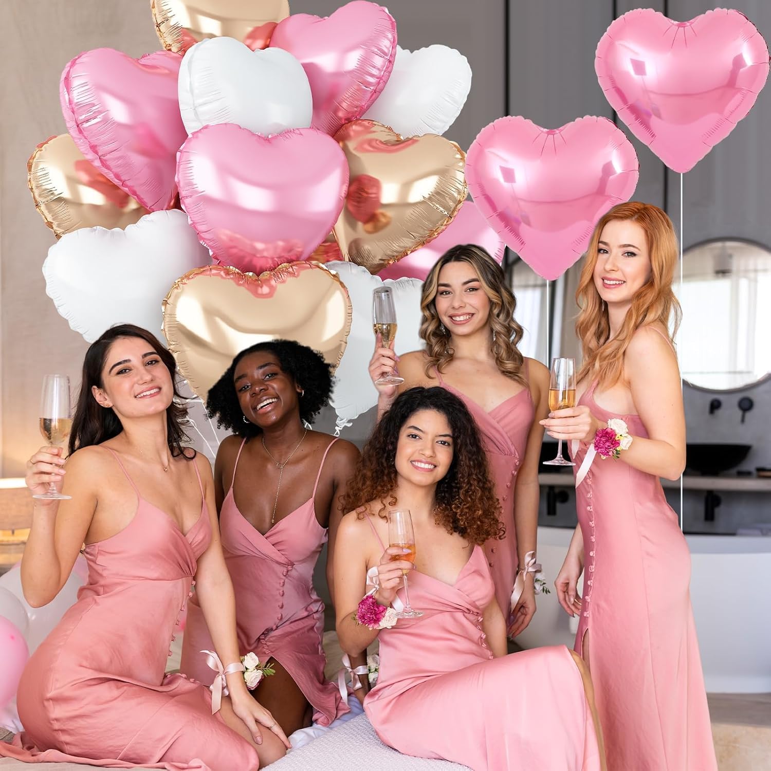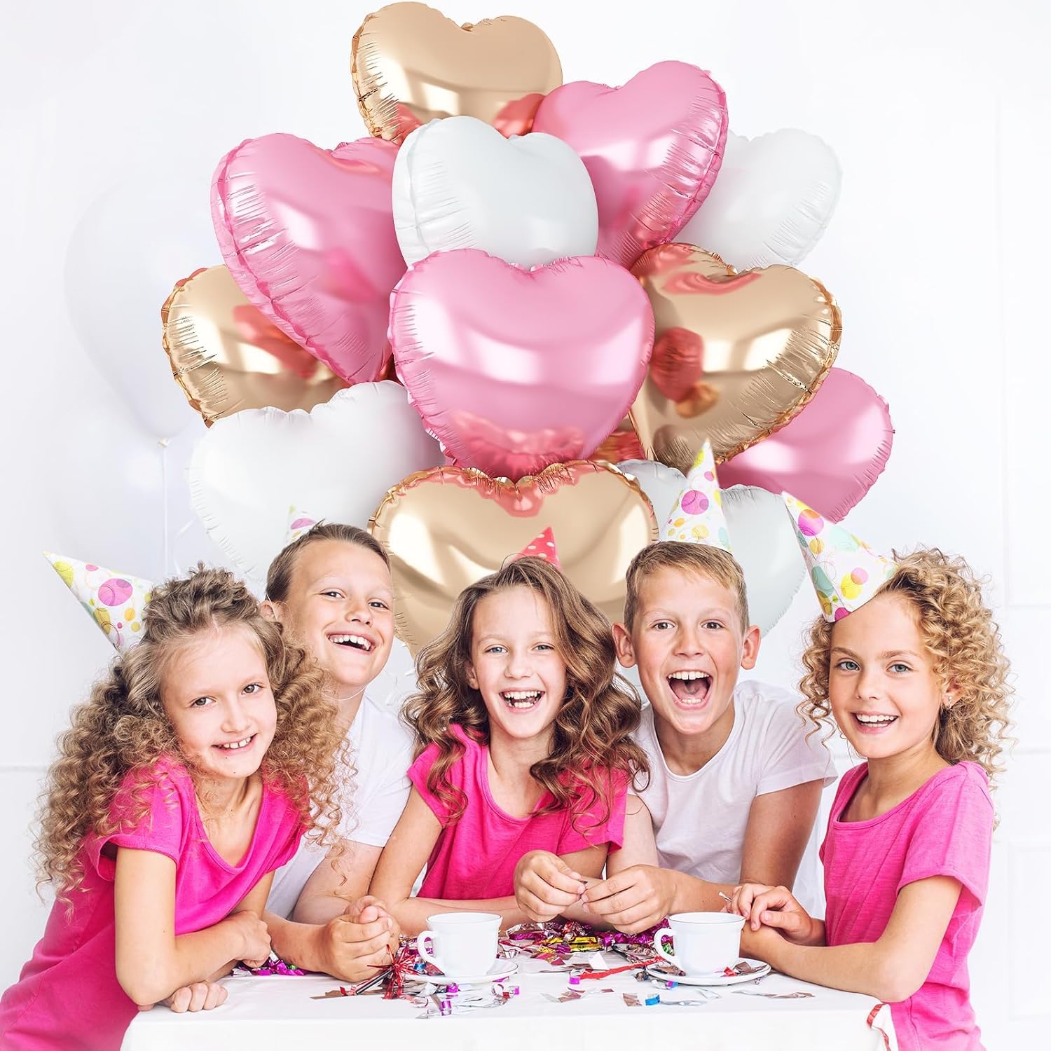 - 【12PCS HEART BALLOONS】Package include 4pcs light pink heart foil balloons,4pcs white heart foil balloons,4pcs rose gold heart foil balloons,1pc straw.Large enough to help you better decorate your party.
