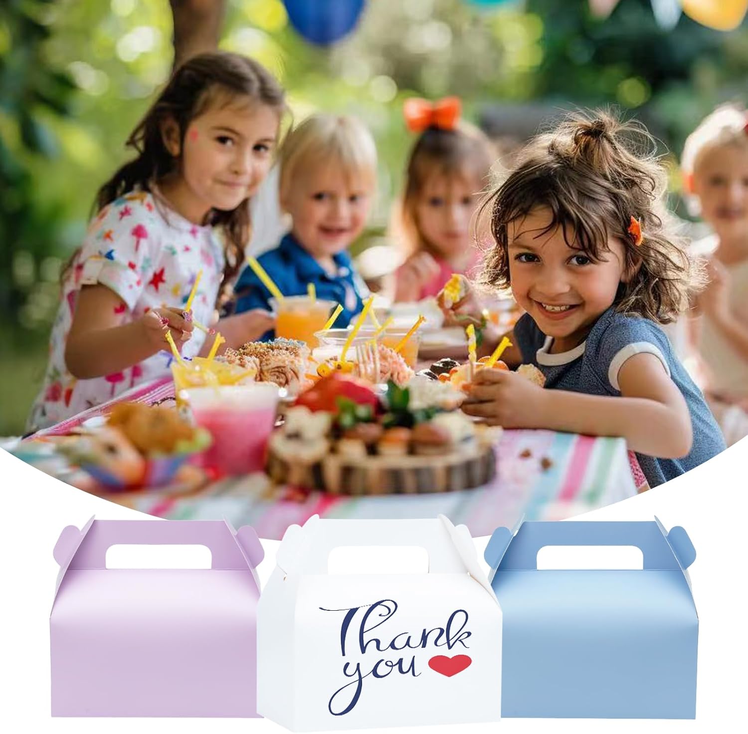 - High-quality Material. These favor boxes are well made with premium white cardboard, durable, sturdy and recyclable, fairly conspicuous and elegant treat boxes. This material can be graffitied, drawn, labeled, and decorated for any theme birthday party