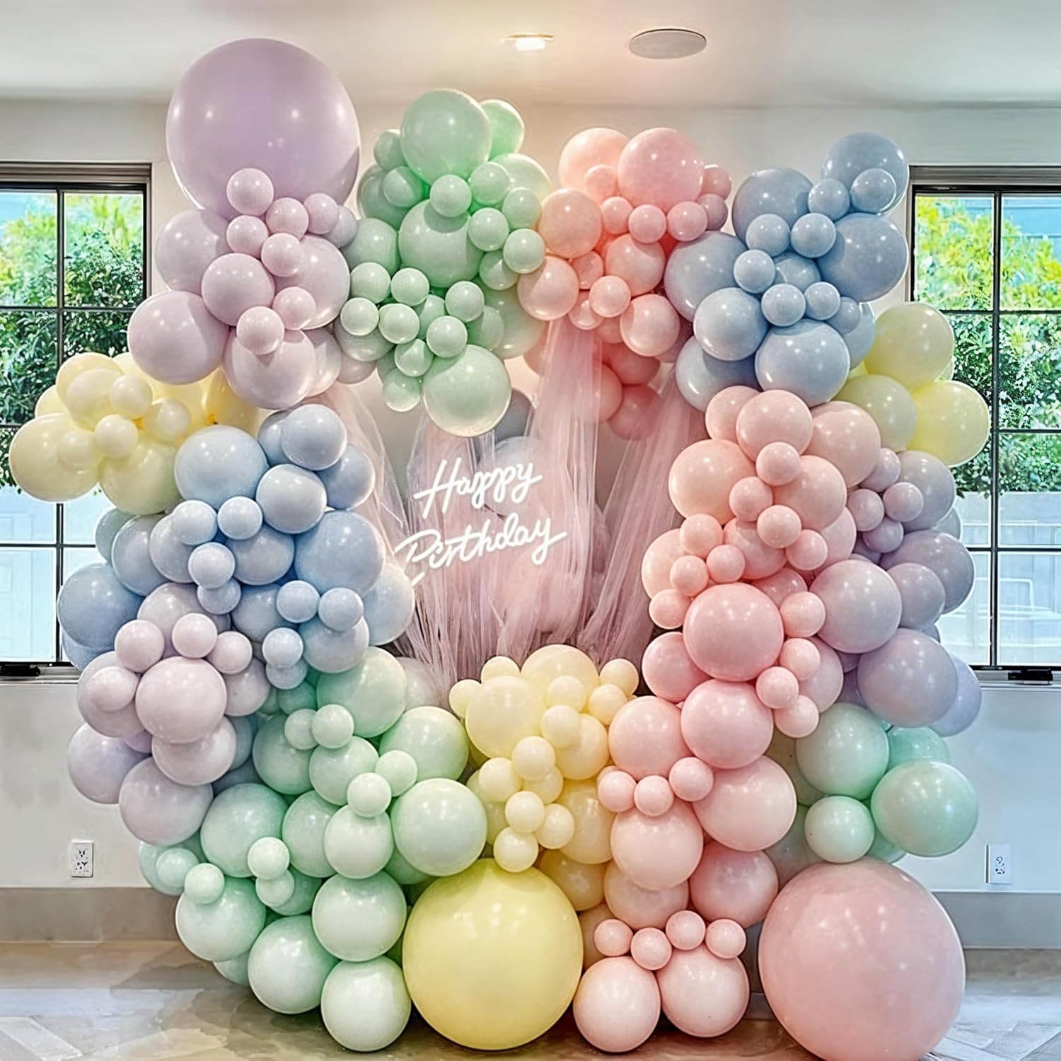 - Versatile scene application: Our light pink and purple balloons can create a joyful holiday atmosphere and immerse you and your family in the party world! The pink and blue green birthday decorations balloons are perfect for kids rainbow and ice cream theme birthday party, unicorn birthday party decorations, baby shower, graduation, wedding, bridal shower, anniversary, company events, photo shoot backdrop decorations.