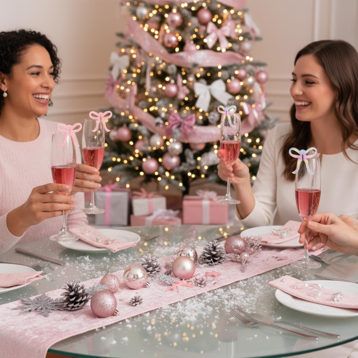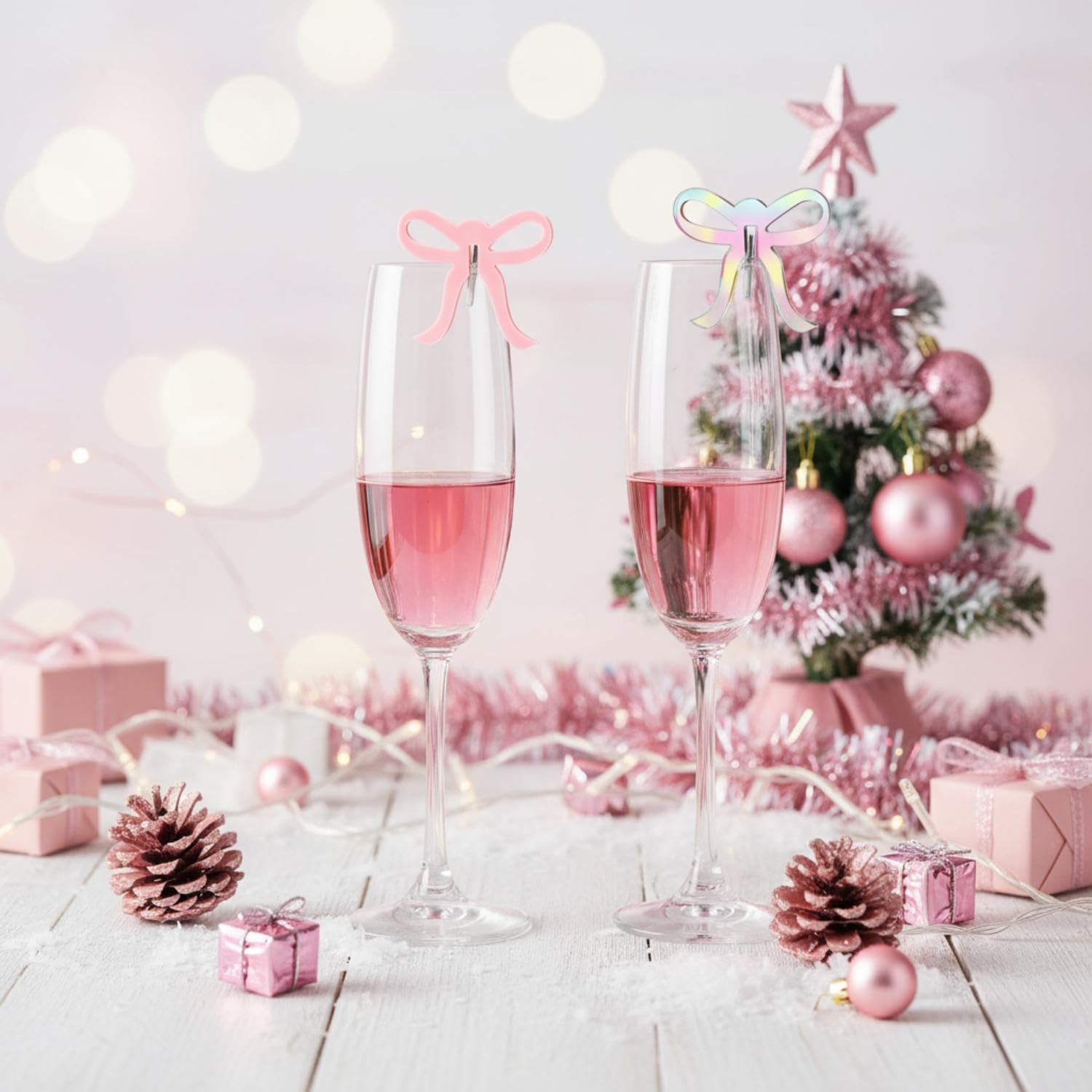 - Attractive Color: add a touch of grandeur to your drinking experience with our vibrant pink, and holographic laser colored bow drink markers, the visually pleasing colors contribute to creating an entertaining and captivating atmosphere for bow themed party decorations