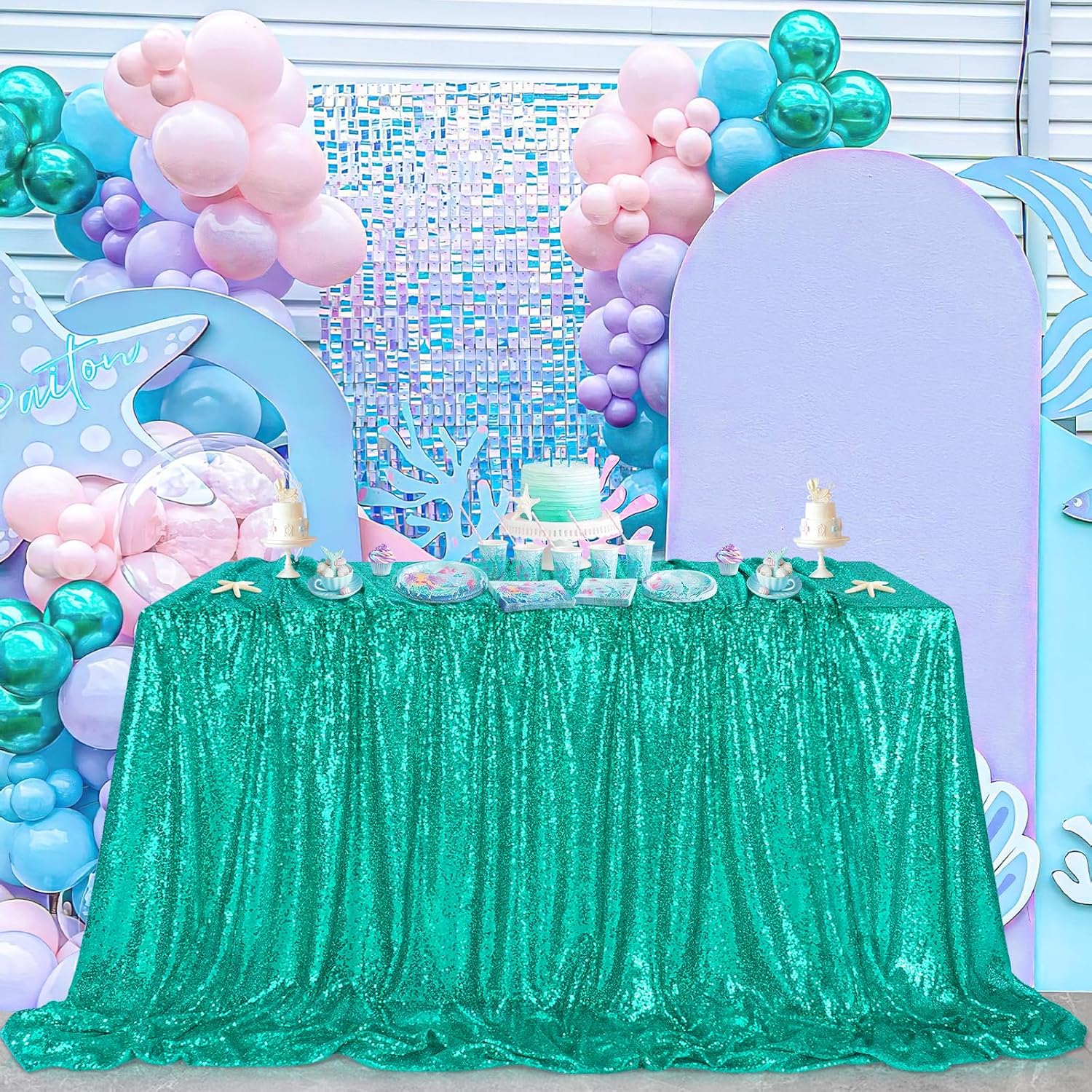 Tablecloth Birthday Party Decorations: 50x80 Inch Sequin Tablecloth Lake Green Drapes Glitter Fabric Wedding Ocean Mermaid Events Table Overlay