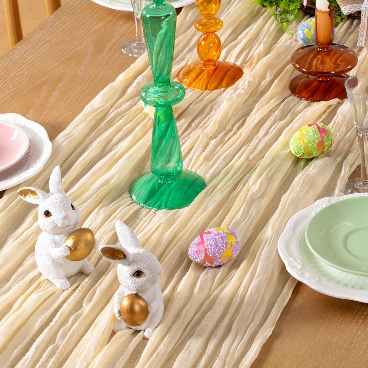 Beige Cheesecloth Table Runner 4 Pack Fall Table Runners 120 Inches Boho Gauze Cream Cheese Cloth Fall Table Decorations for Thanksgiving Wedding Bridal Baby Shower Garden Party Decor