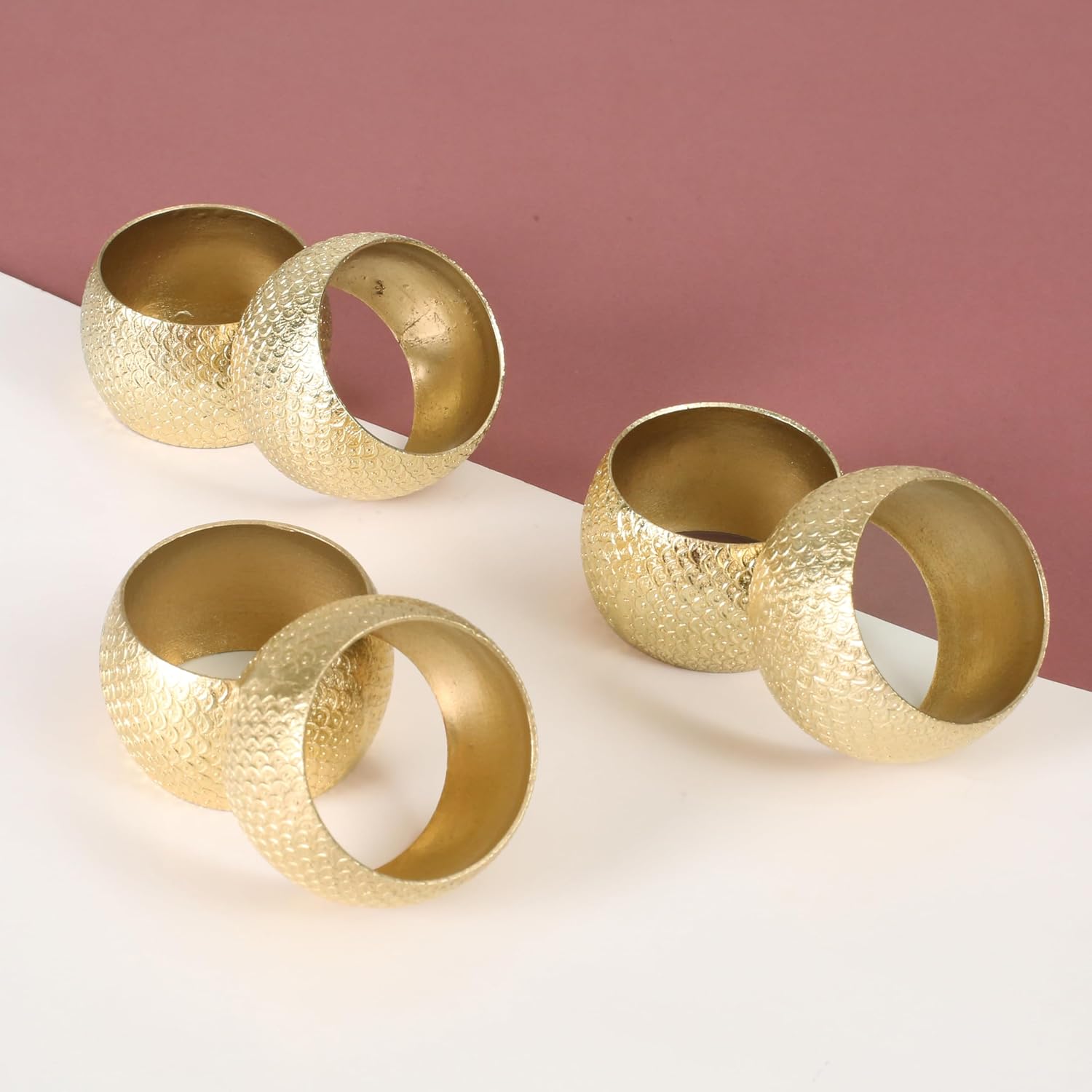 Napkin Holders for Cloth Napkins Set of 12 - Lightweight Metal Round Napkin Holder Hammered Textured,Elegant Table Décor for Weddings, Dinners, Holidays, Events, Kitchen & Dining (Gold) - CLEENTABLE