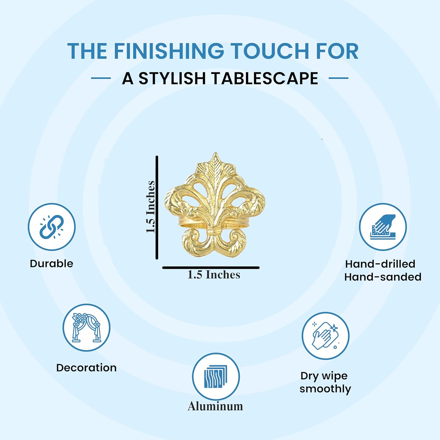 Lightweight Metal Napkin Rings Set of 12 - Fleur-de-Lis Napkin Holders for Dining Table, Weddings, and Special Events - Elegant Table Décor for Home & Restaurants (Gold) - CLEENTABLE